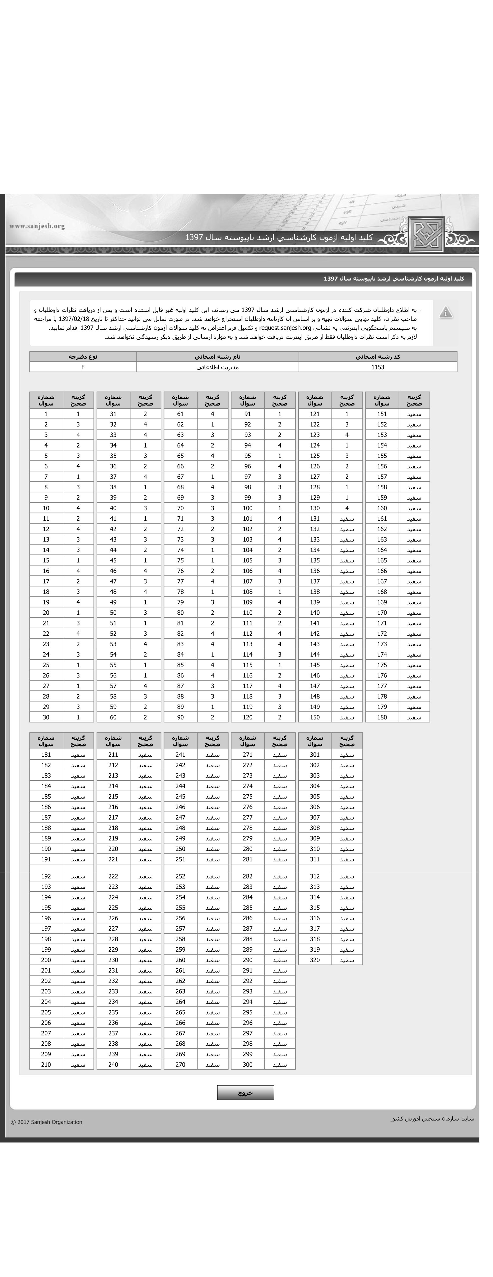 پاسخنامه ها