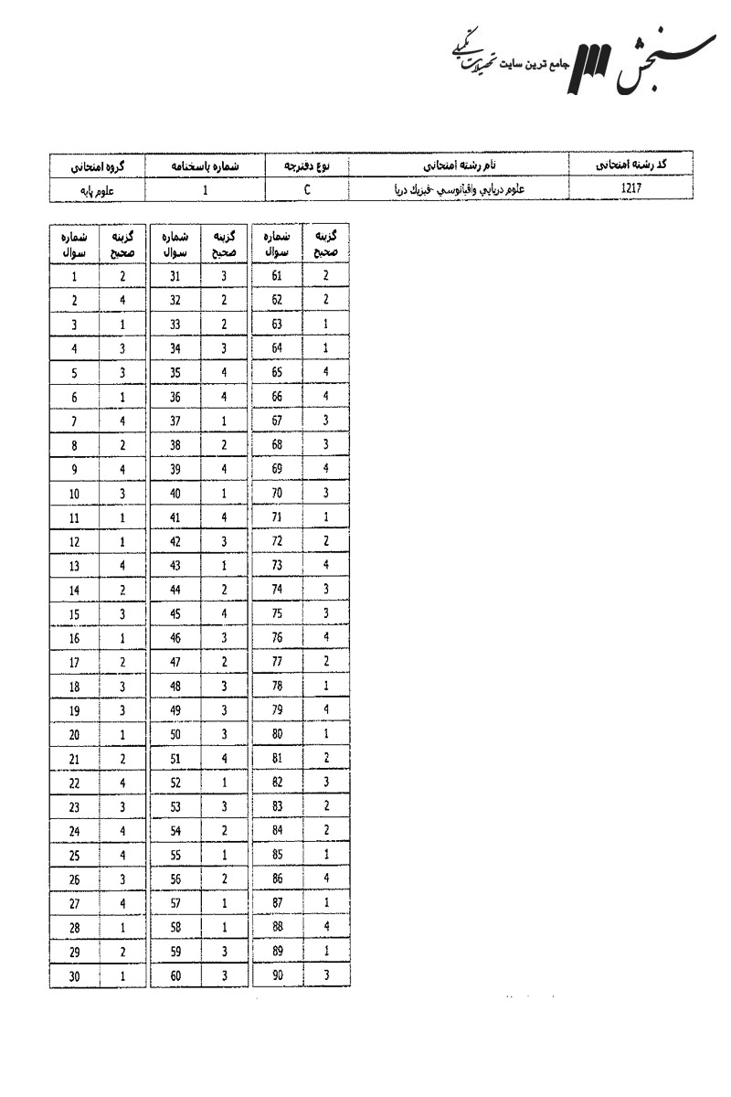 سوالات آزمون کارشناسی ارشد سراسری اقیانوس شناسی فیزیکی سال 13971397---50,000 ريال2.05MB