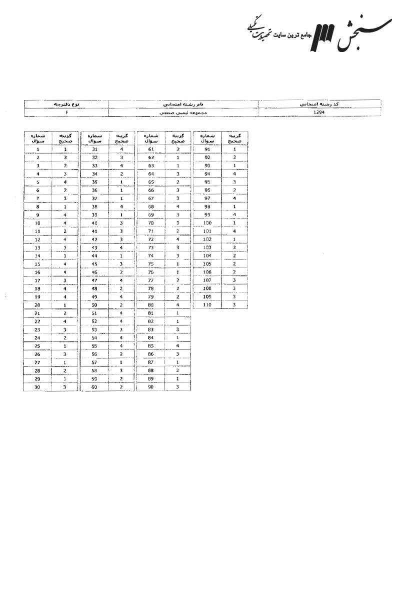 پاسخنامه تستی کارشناسی ارشد سراسری ایمنی، بهداشت و محیط زیست (مجموعه ایمنی صنعتی) سال 13961396رایگان108KB