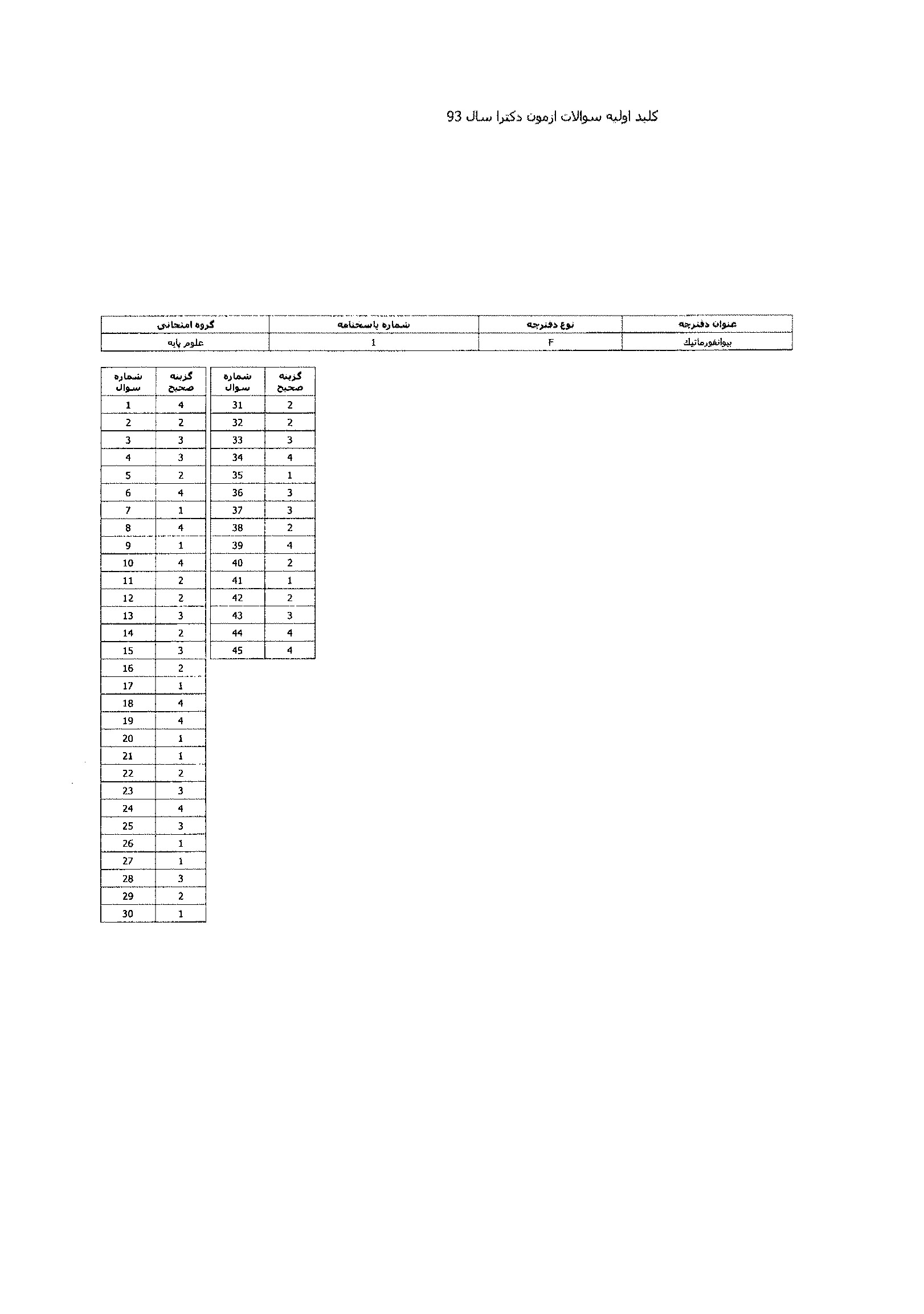 پاسخنامه ها