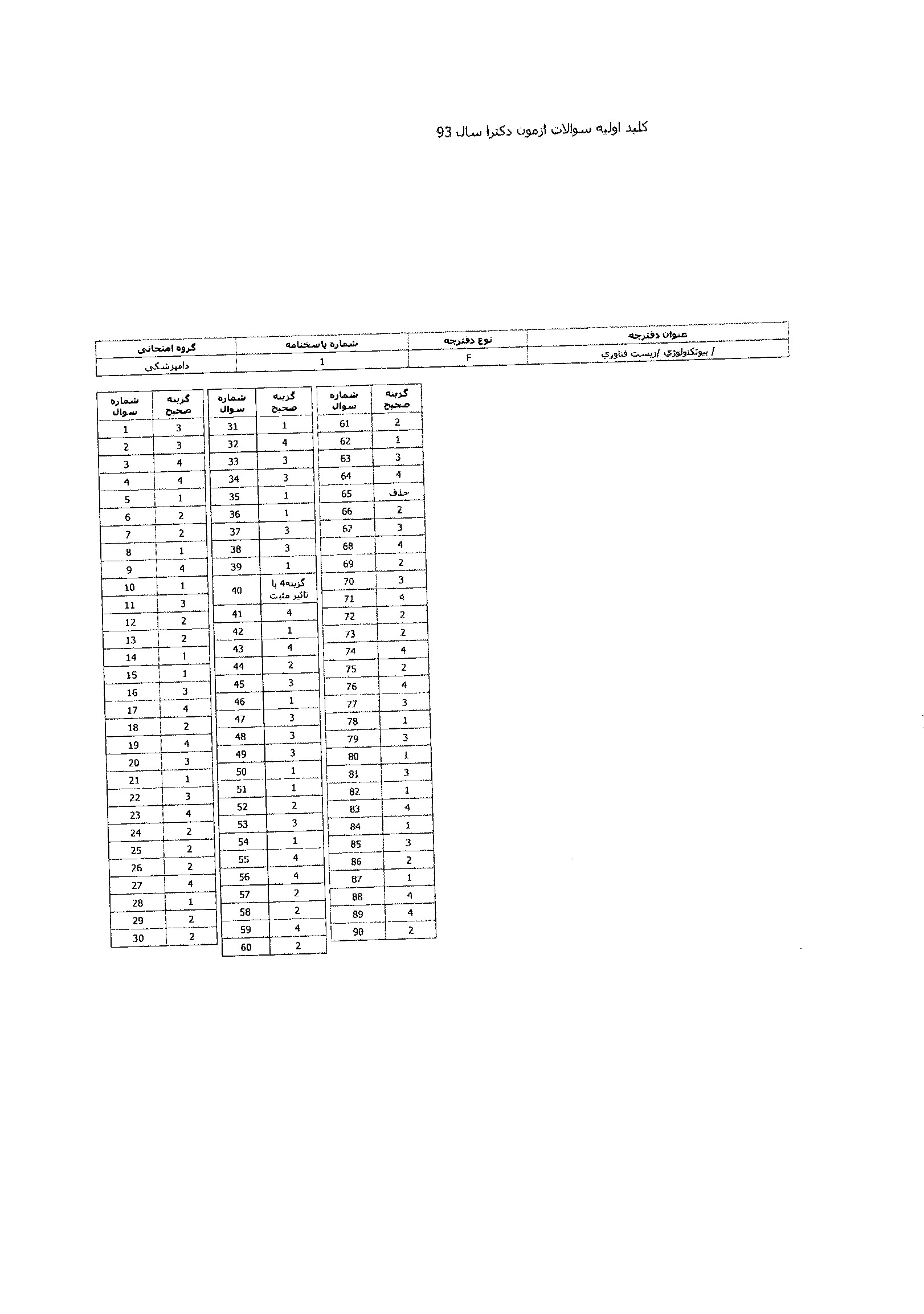پاسخنامه ها