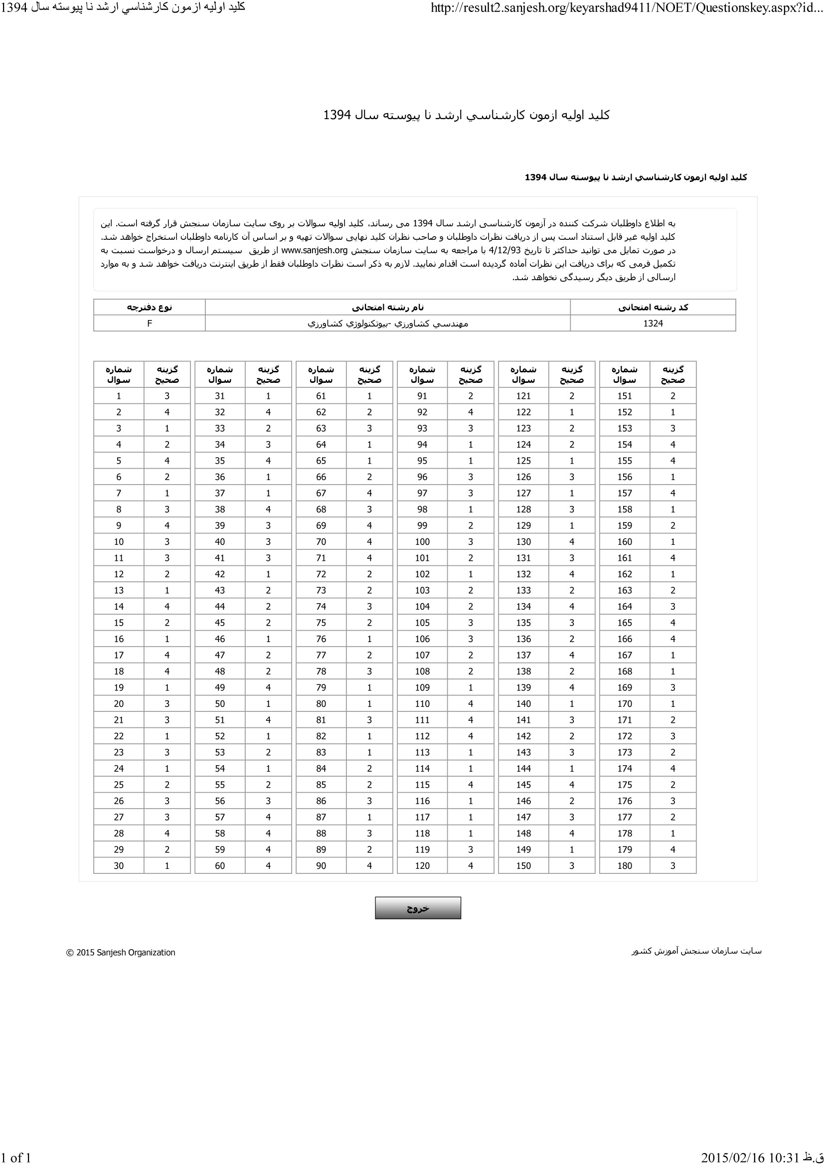 پاسخنامه ها