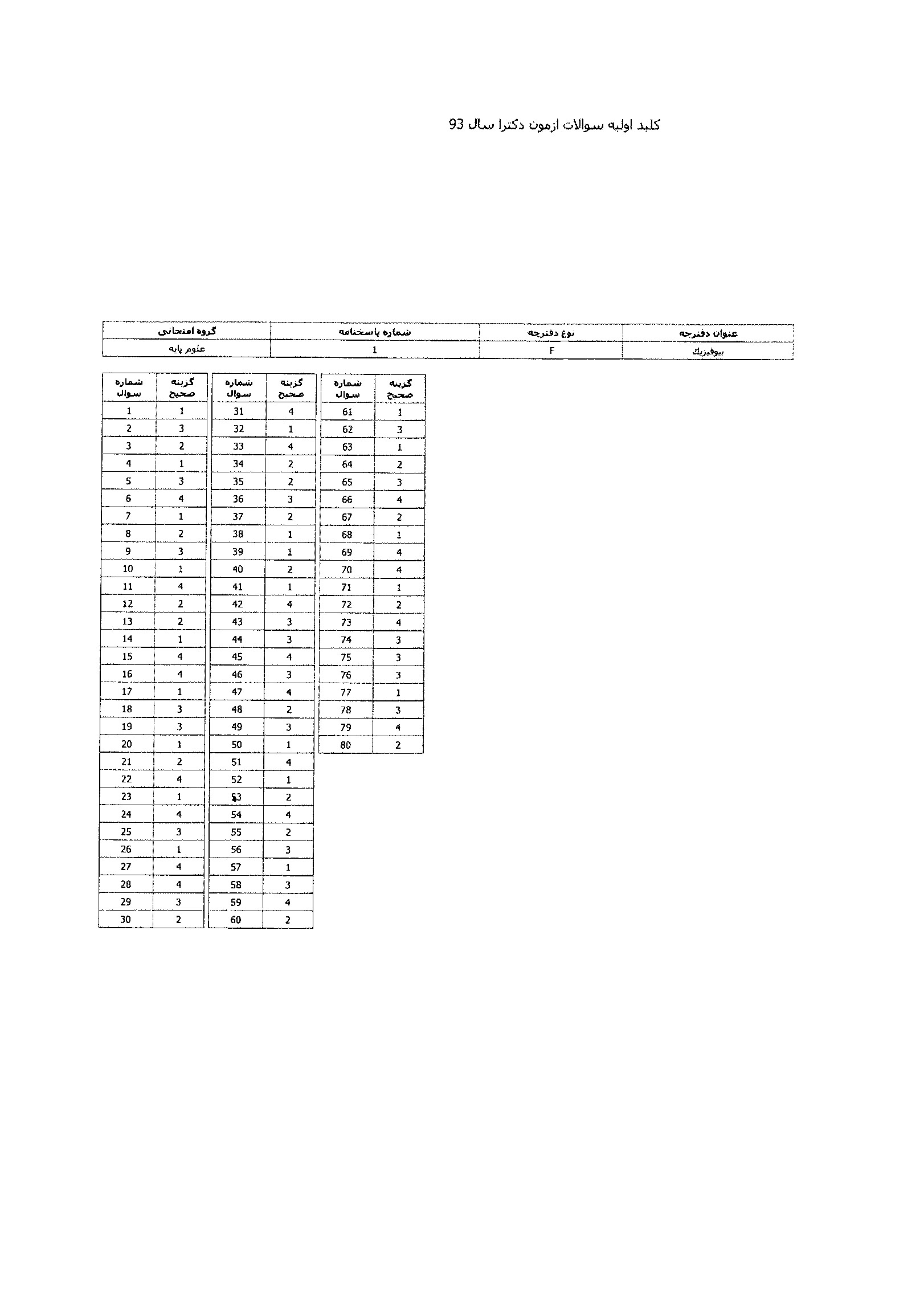 پاسخنامه تستی دکتری سراسری بیوفیزیک سال 13951395رایگان35.1KB---