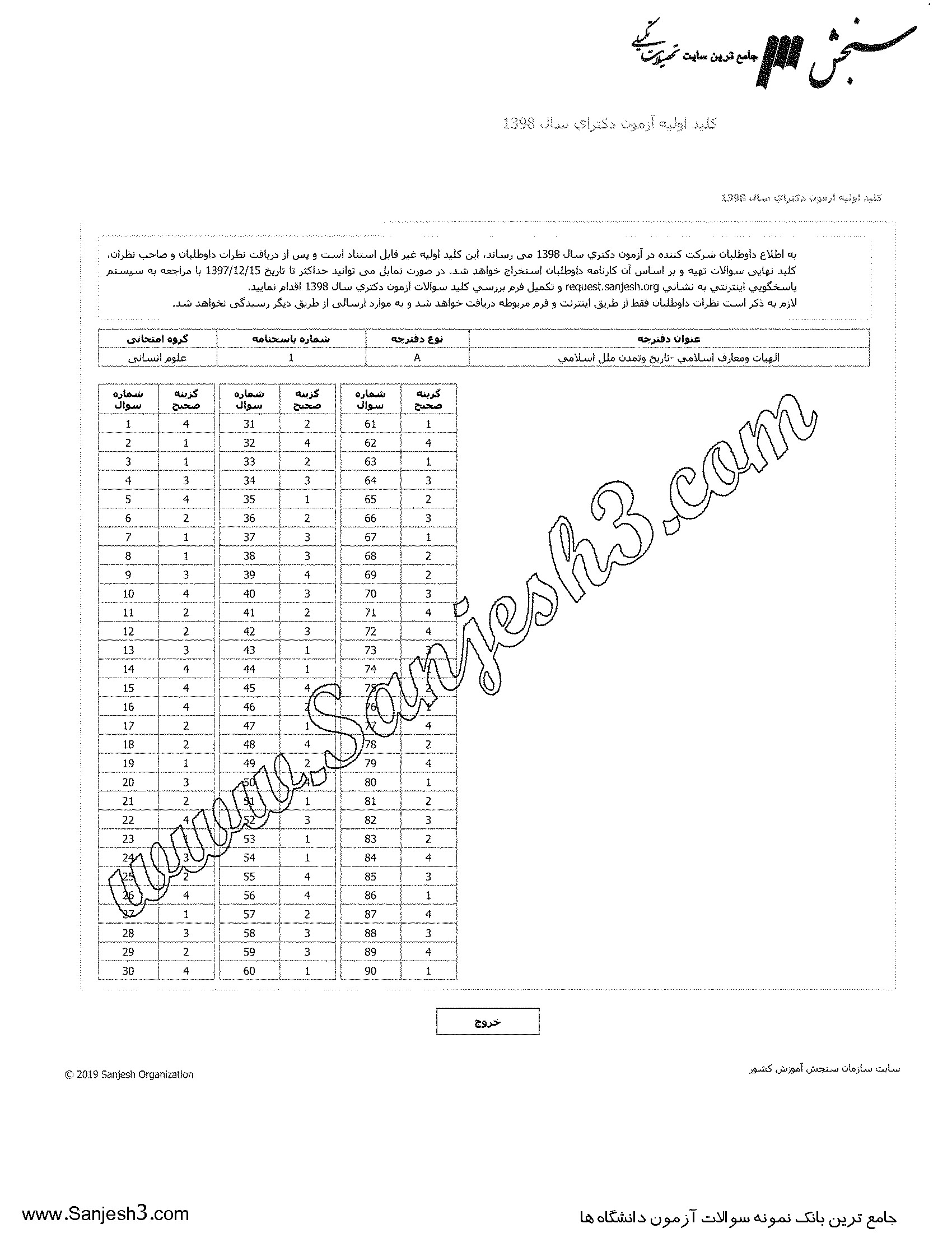 پاسخنامه تستی دکتری سراسری تاریخ و تمدن ملل اسلامی سال 13951395رایگان31.9KB---