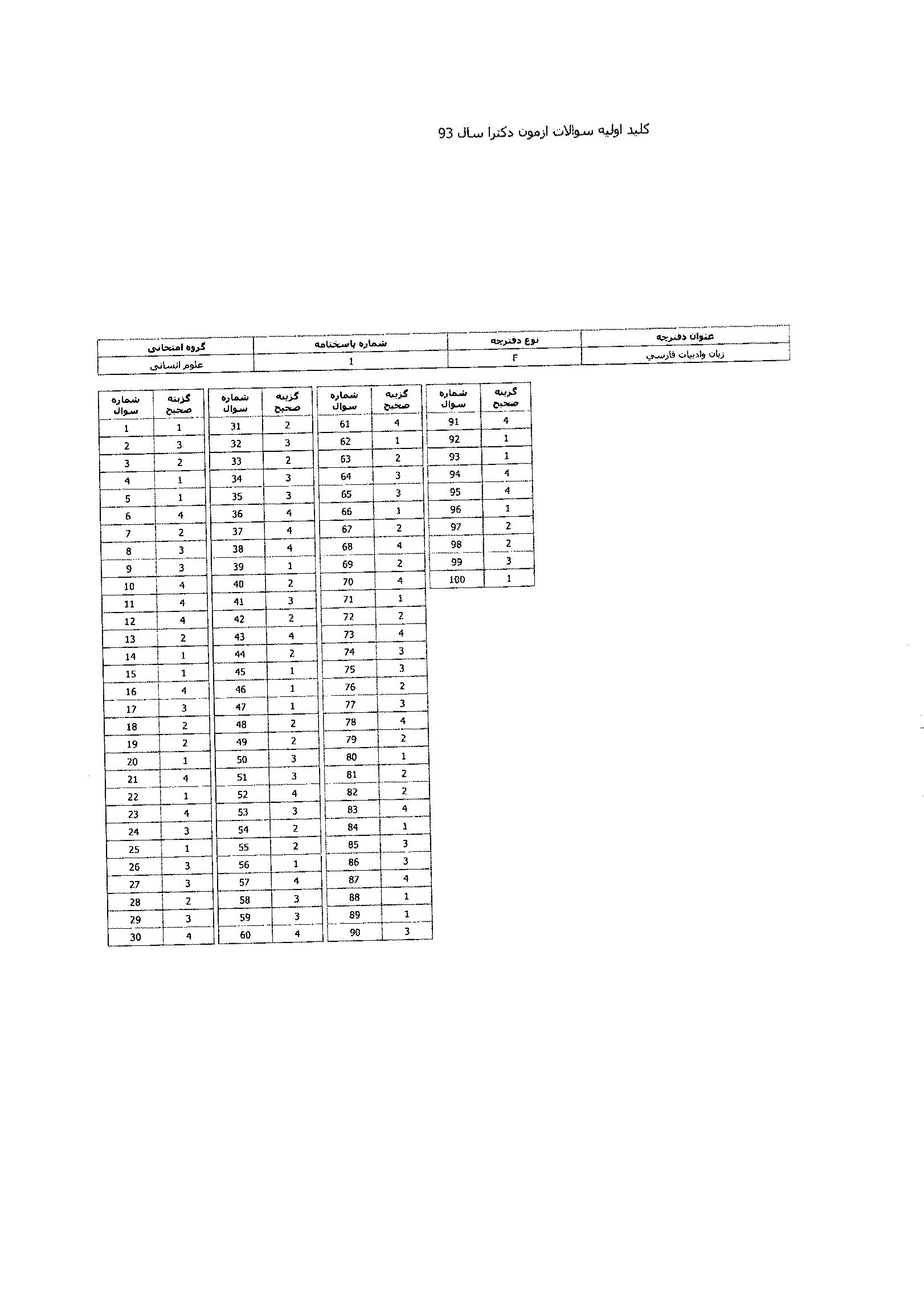 پاسخنامه تستی دکتری سراسری نیمه متمرکز زبان و ادبیات فارسی1398رایگان60KB---