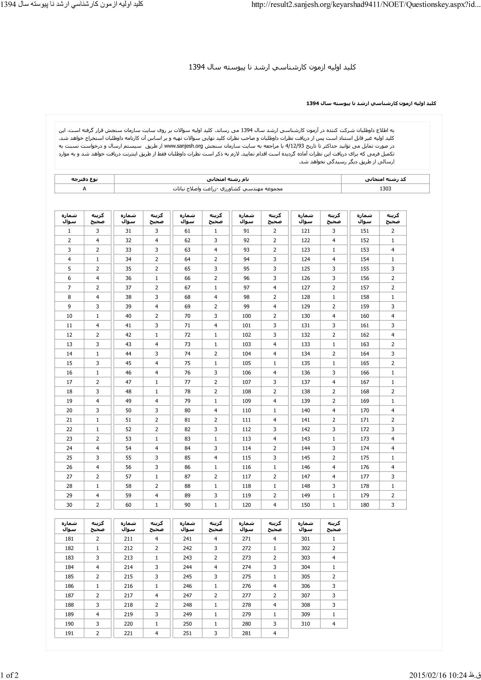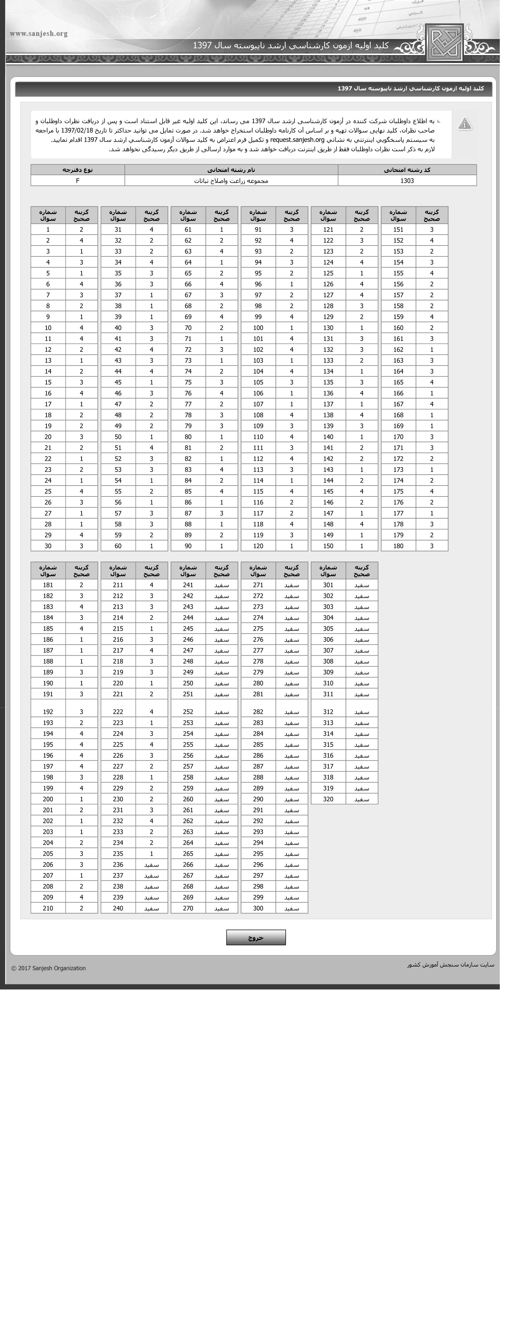 پاسخنامه ها