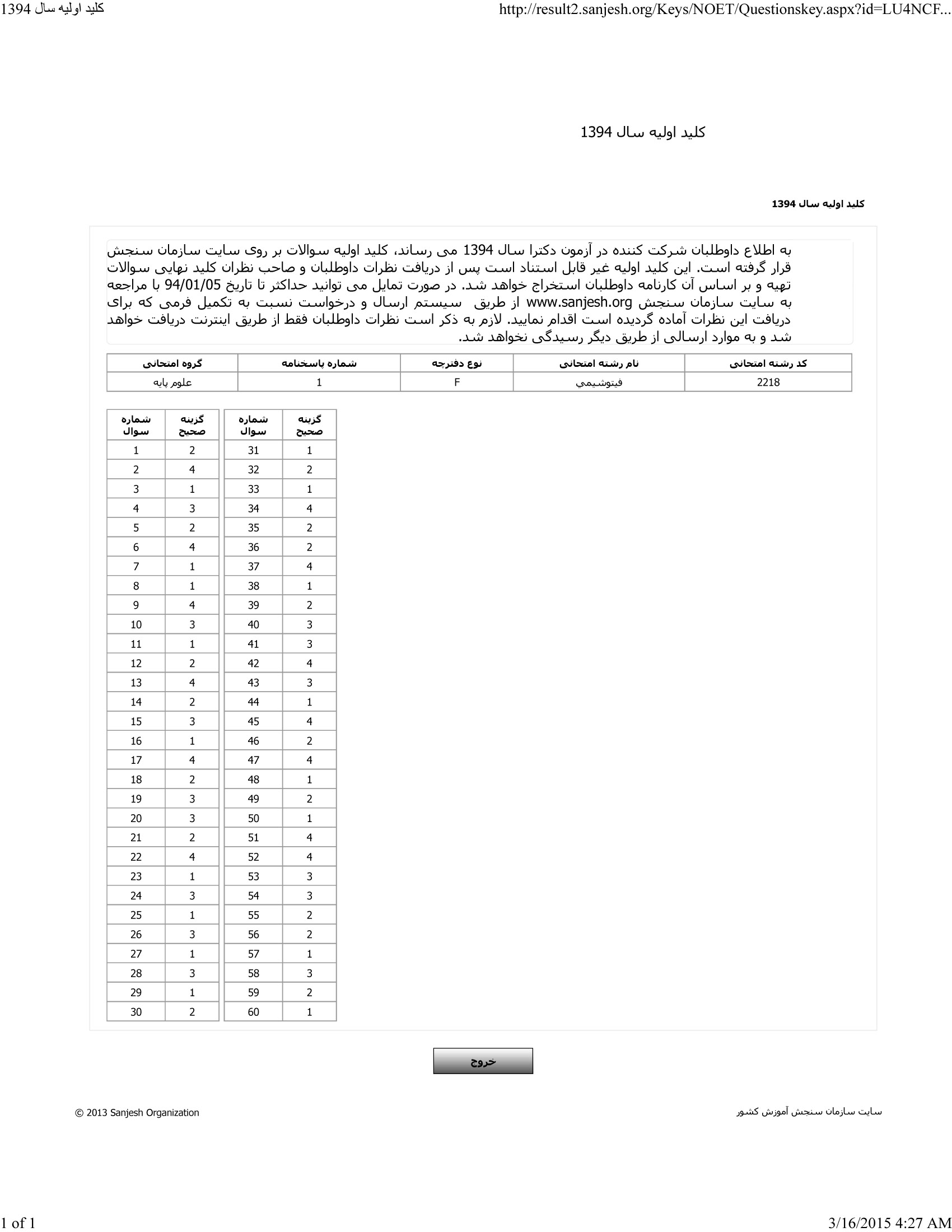 پاسخنامه ها