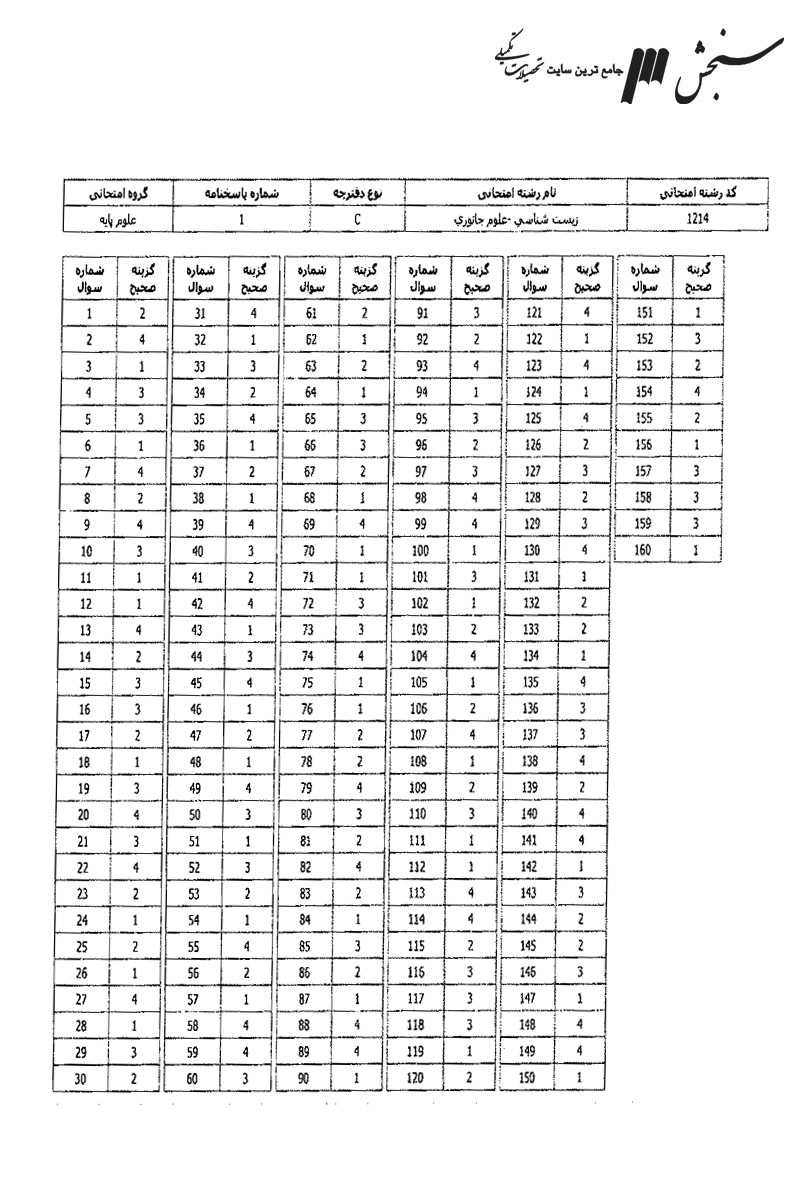 سوالات آزمون کارشناسی ارشد سراسری زیست شناسی جانوری سال 13941394---50,000 ريال1.85MB