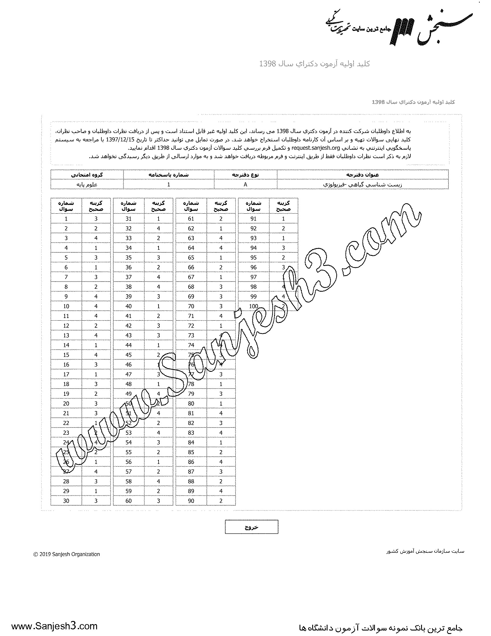 پاسخنامه تستی دکتری سراسری زیست شناسی گیاهی - فیزیولوژی سال 13951395رایگان34.9KB---