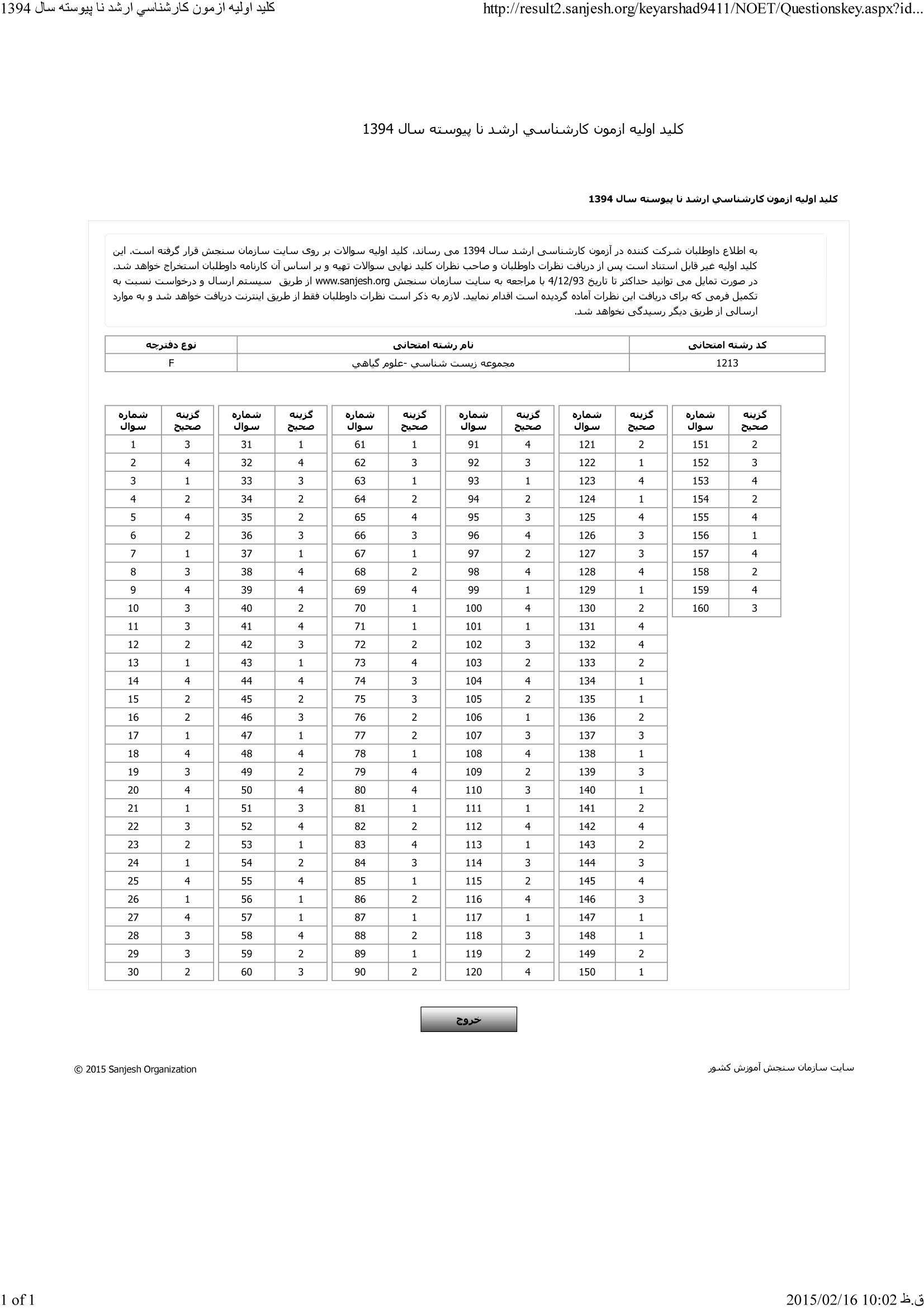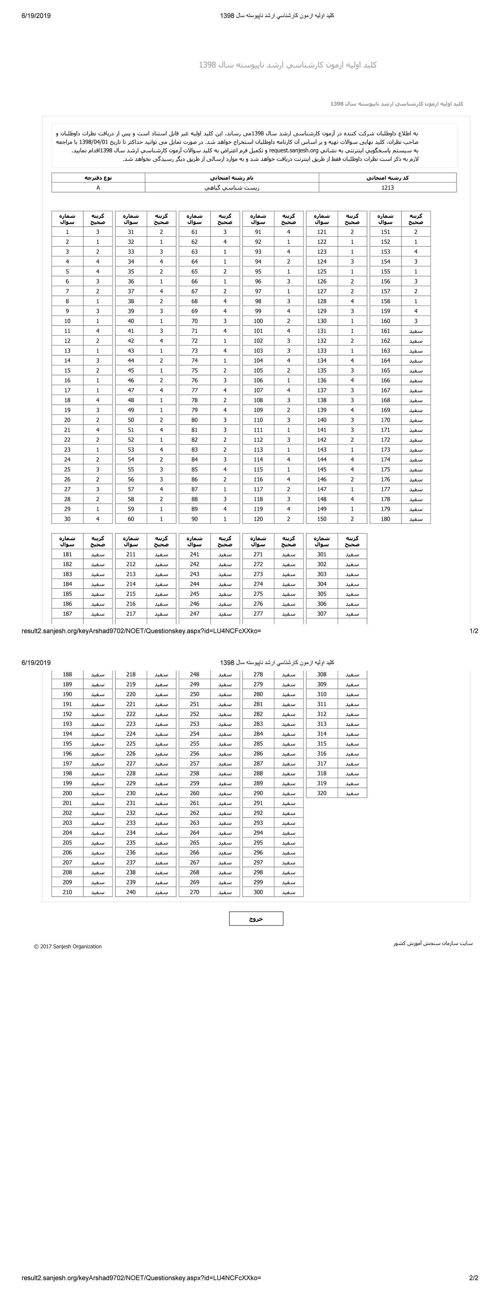 پاسخنامه ها