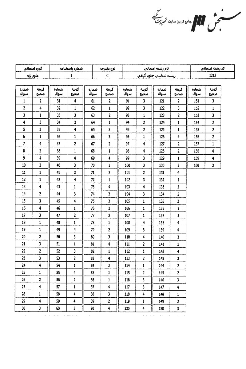 نمونه سوالات زیست شناسی گیاهی، شامل دروس زبان عمومی و تخصصی (انگلیسی) – مجموعه زیست شناسی (گیاهی، جانوری، میکروبی، سلولی و مولکولی، ژنتیک، بیوشیمی، بیوفیزیک، اکولوژی و تکامل) – فیزیولوژی گیاهی – سیستماتیک گیاهی – تکوین گیاهی (ریخت شناسی، تشریح، ریخت زائی و اندامزائی) ، جهت آشنایی داوطلبان با سوالات کارشناسی ارشد سراسری