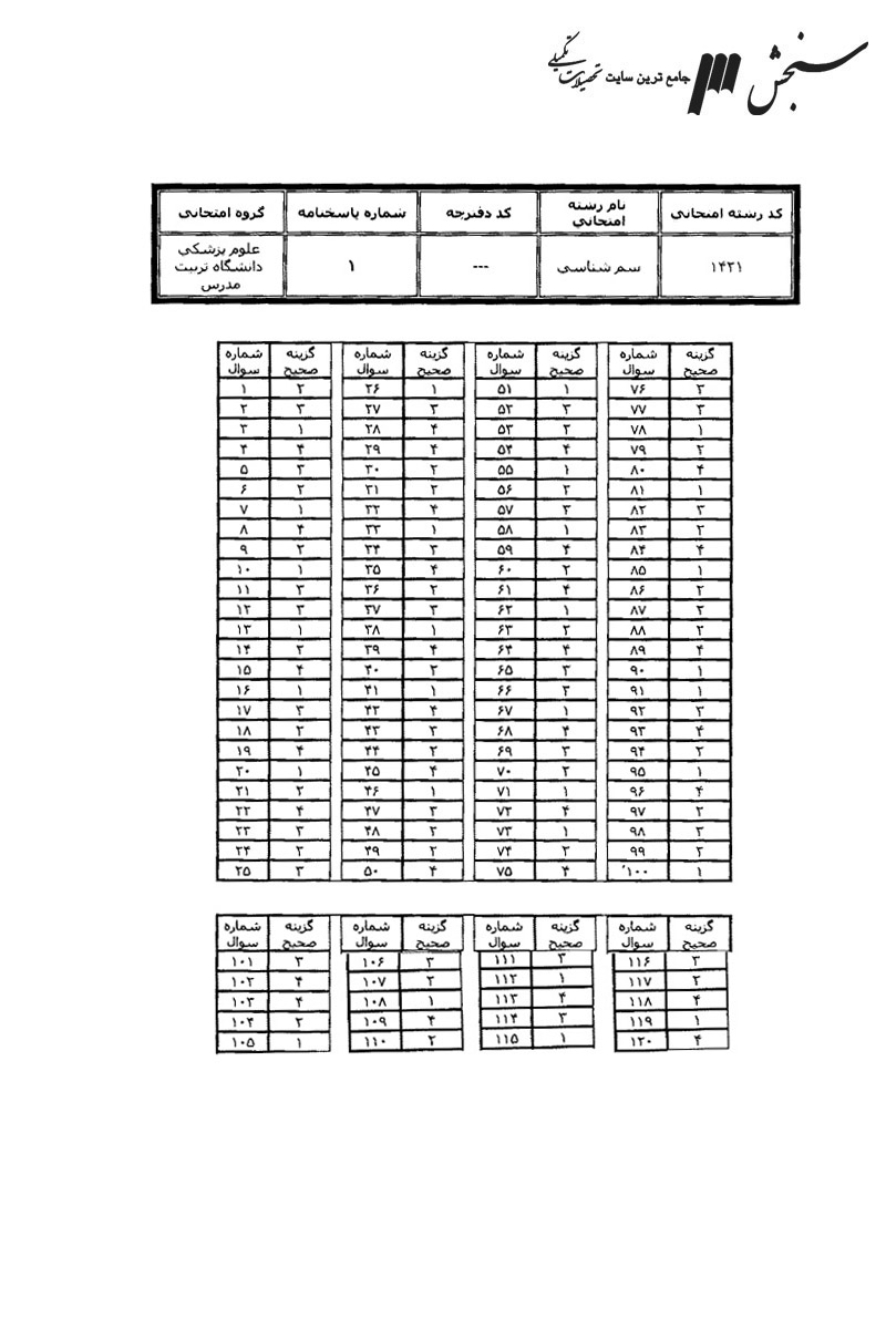 سوالات آزمون کارشناسی ارشد سراسری سم شناسی سال 13941394---50,000 ريال1.97MB