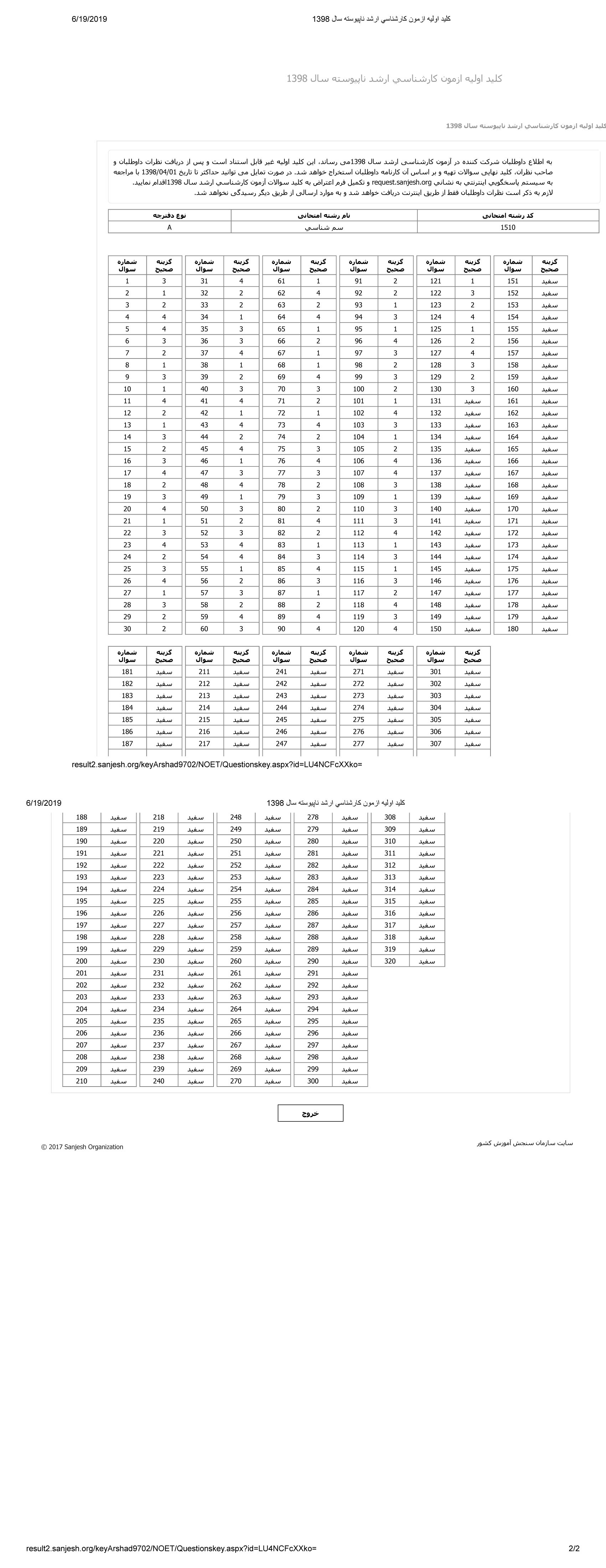 پاسخنامه ها