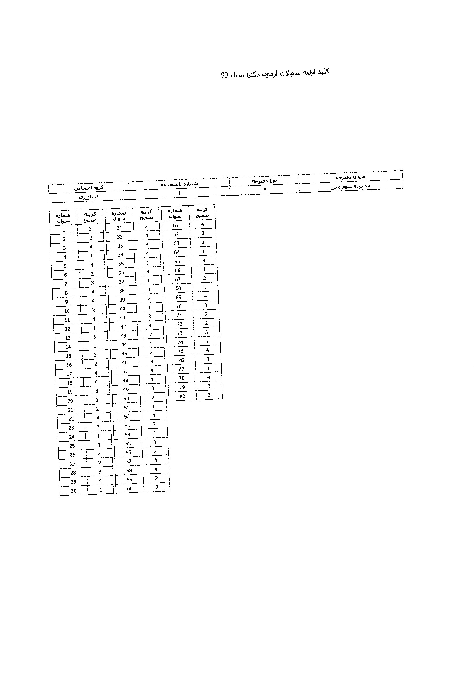 پاسخنامه ها