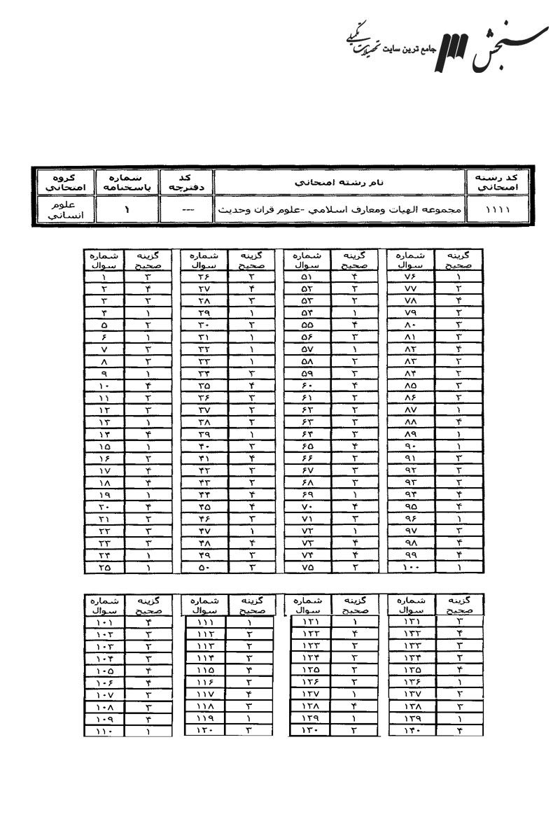 سوالات آزمون کارشناسی ارشد سراسری علوم قرآن و حدیث سال 13991399---50,000 ريال3.73MB