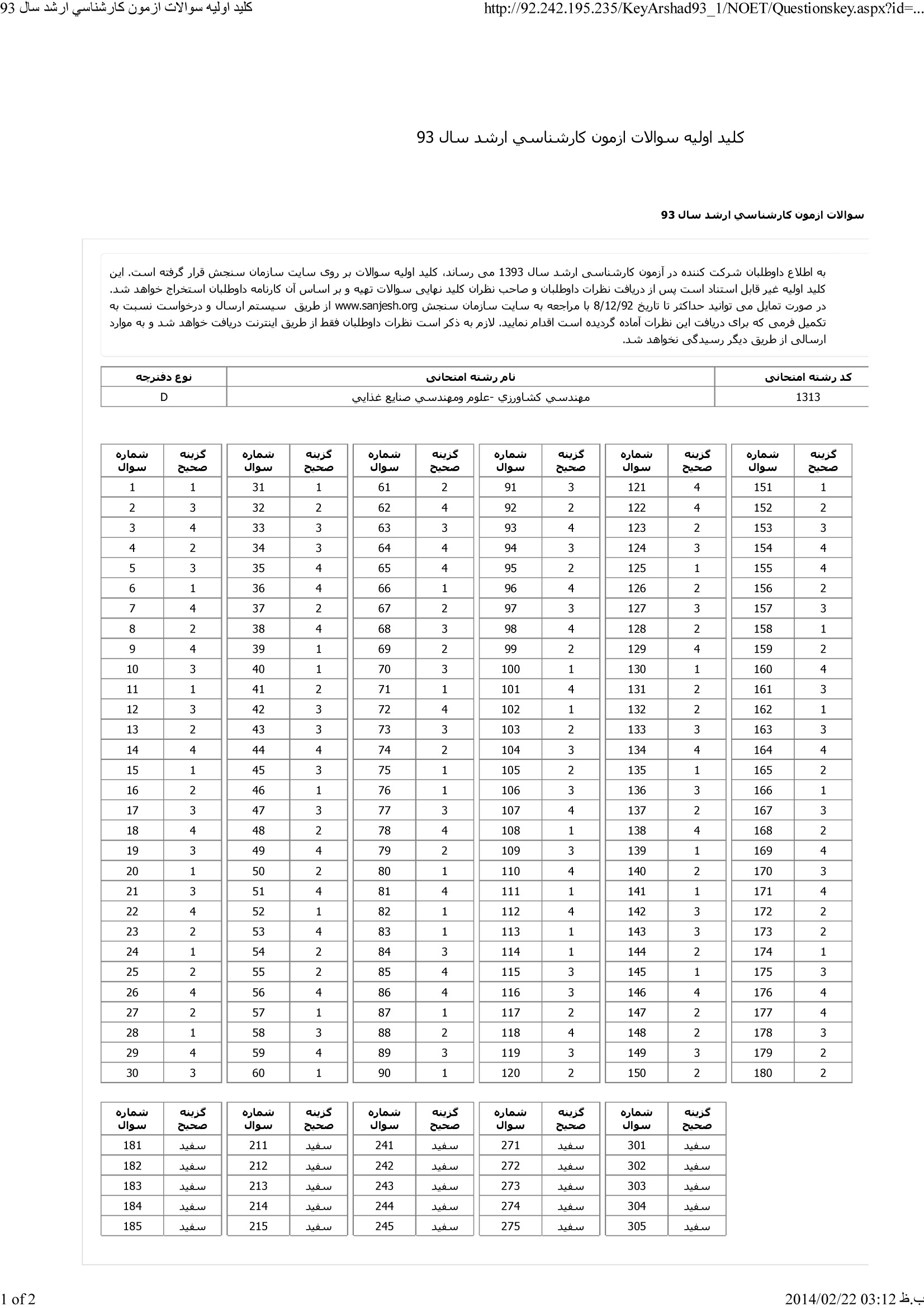 سوالات آزمون کارشناسی ارشد سراسری علوم و مهندسی صنایع غذایی1393---50,000 ريال2.26MB