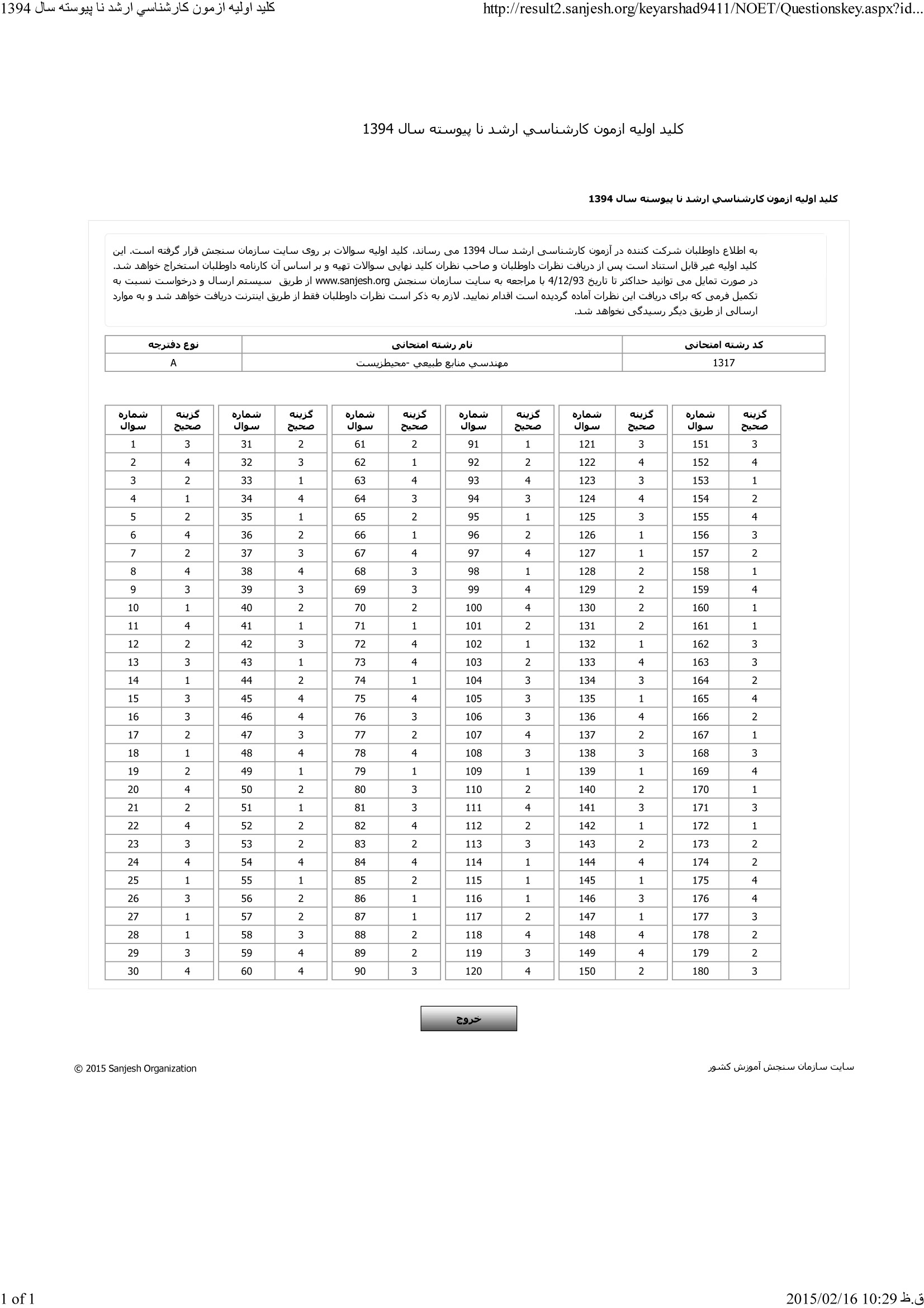 سوالات آزمون کارشناسی ارشد سراسری علوم و مهندسی محیط زیست سال 13941394---50,000 ريال2.45MB
