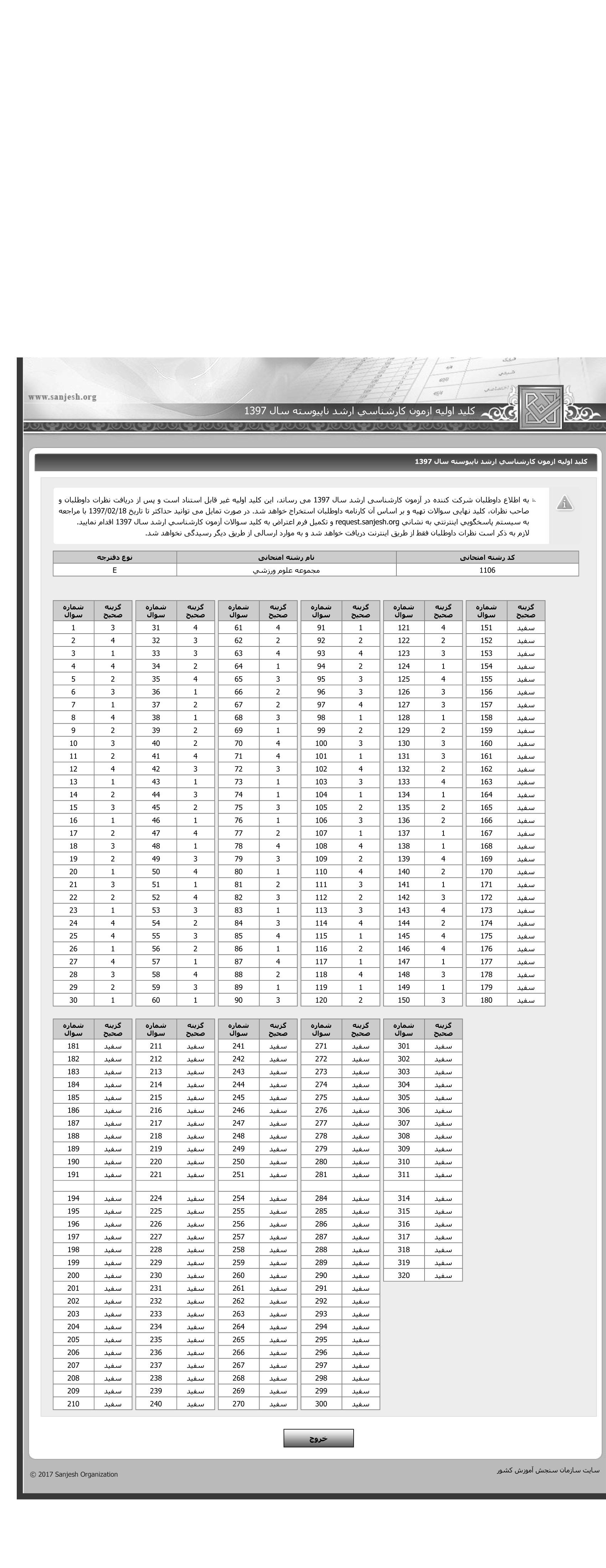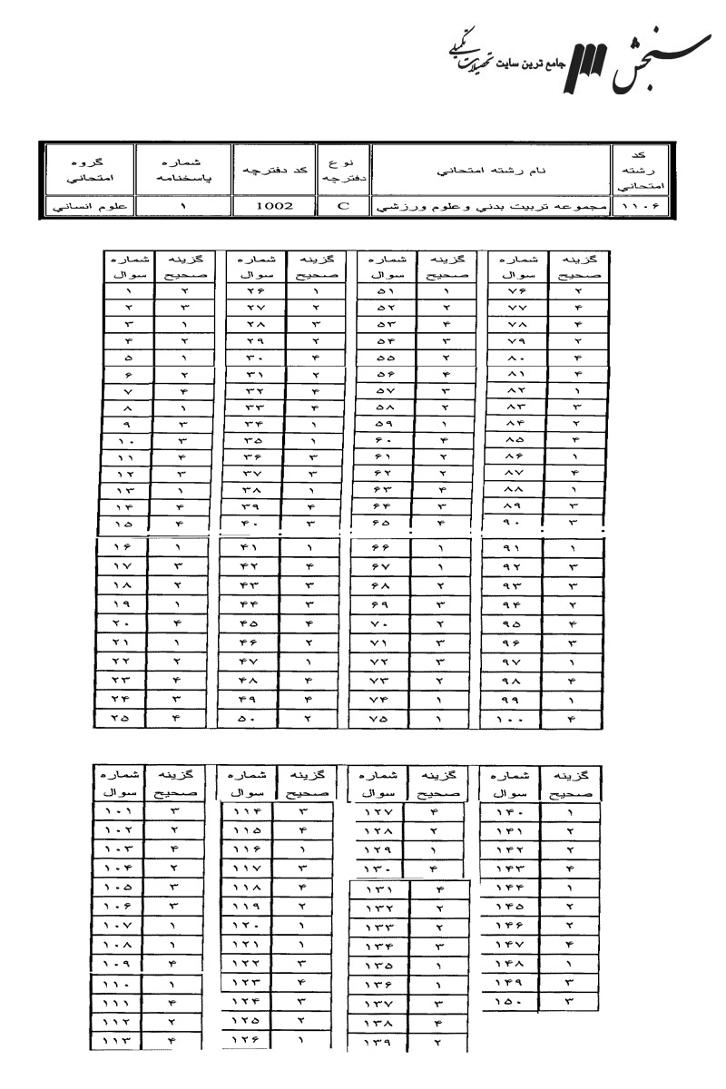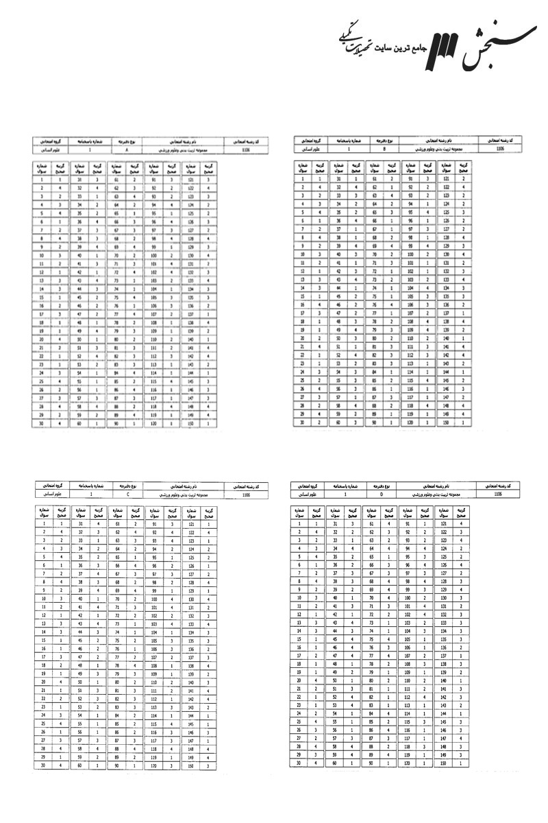پاسخنامه ها