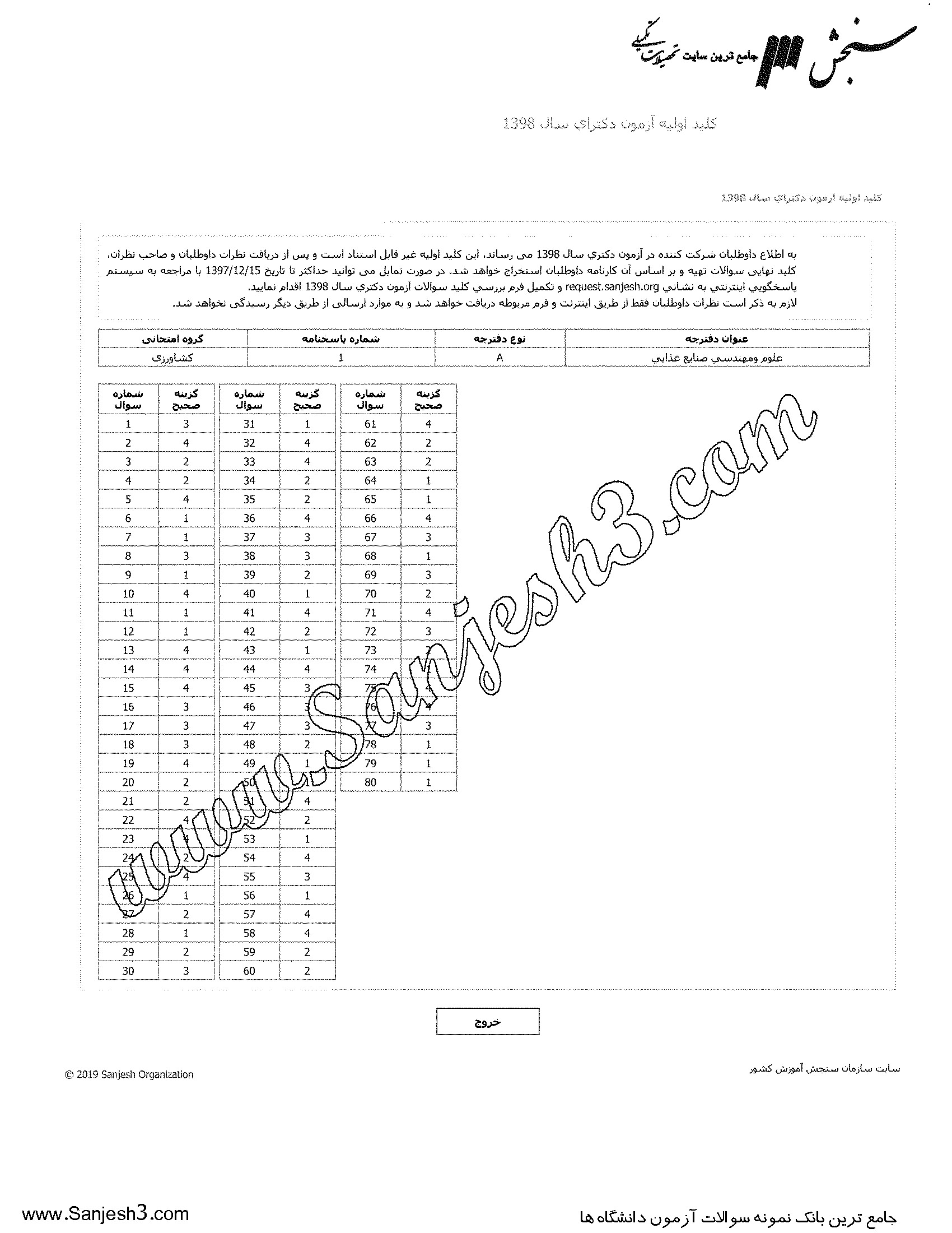 پاسخنامه تستی دکتری سراسری علوم و مهندسی صنایع غذایی - زیست فناوری مواد غذایی (میکروبیولوژی مواد غذایی) سال 13941394رایگان129KB