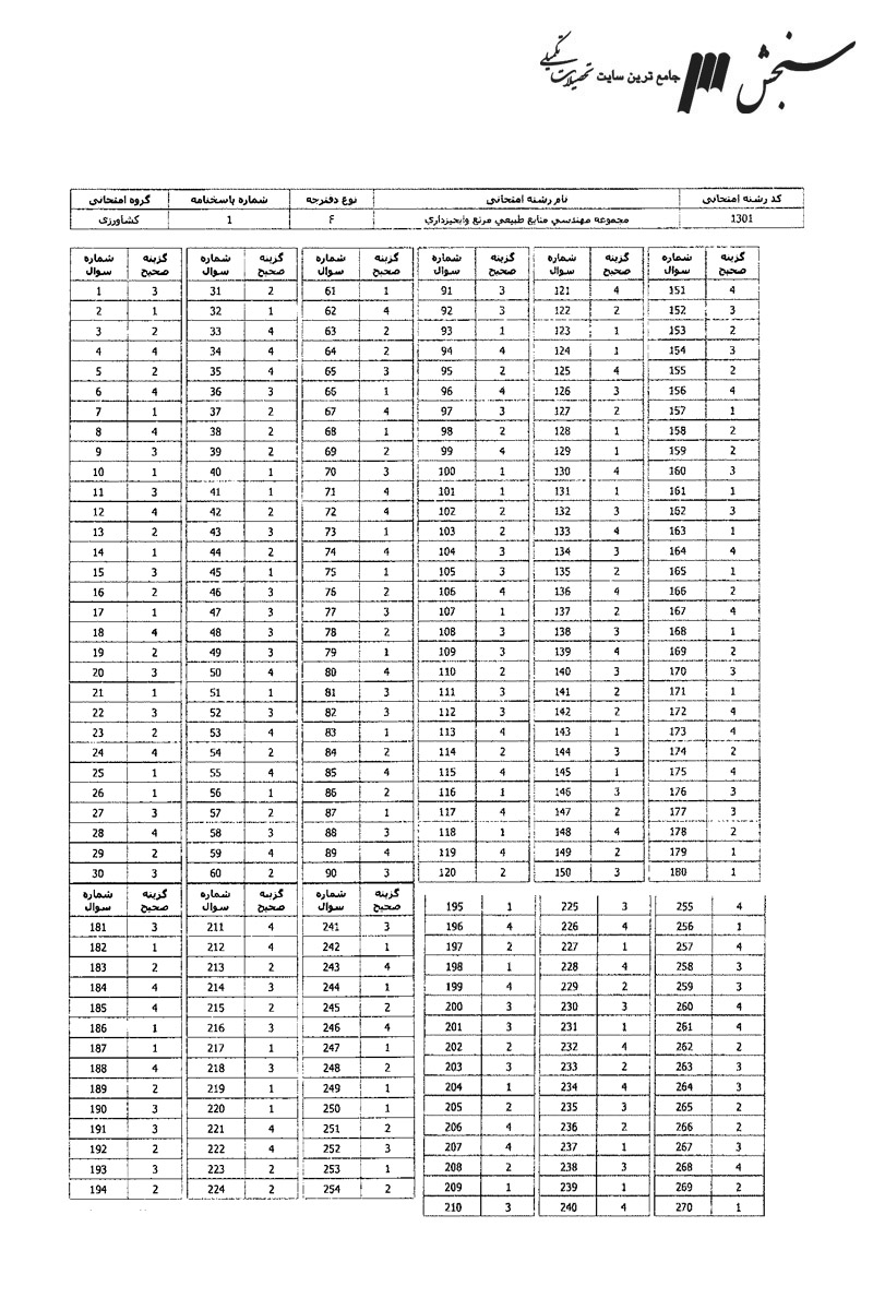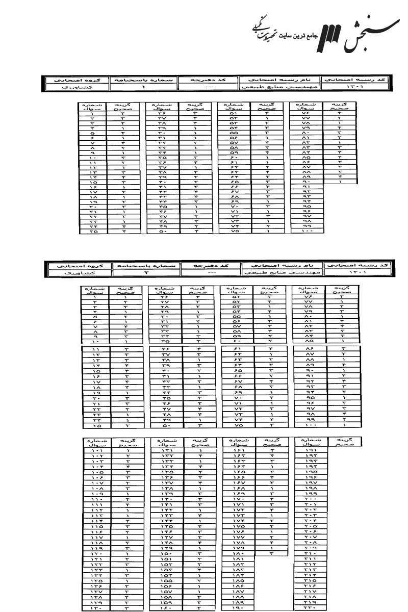پاسخنامه ها