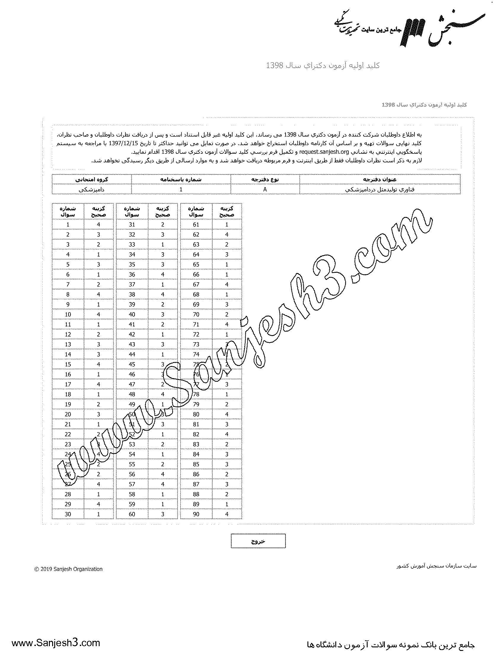 پاسخنامه ها