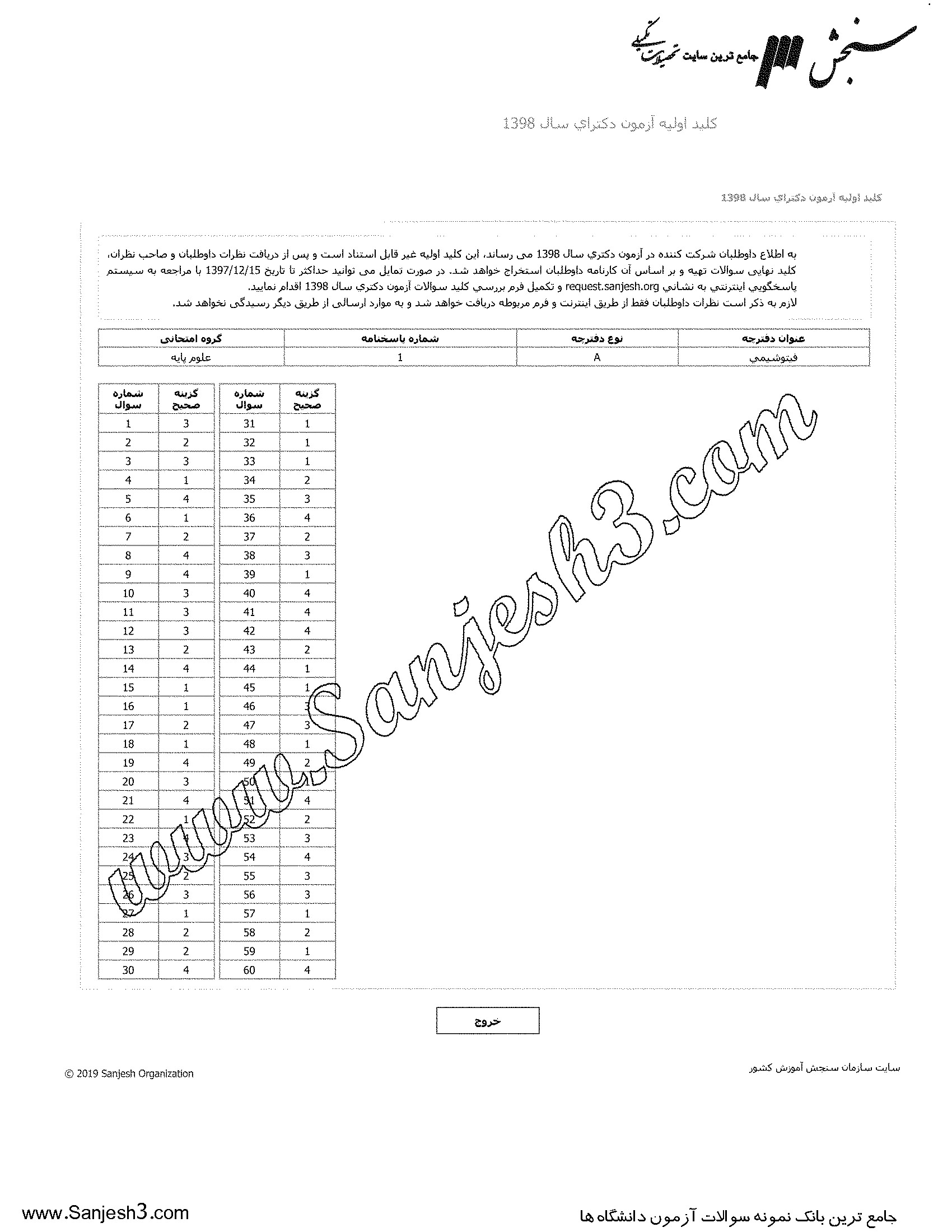 پاسخنامه تستی دکتری سراسری فیتوشیمی سال 13951395رایگان31.6KB---