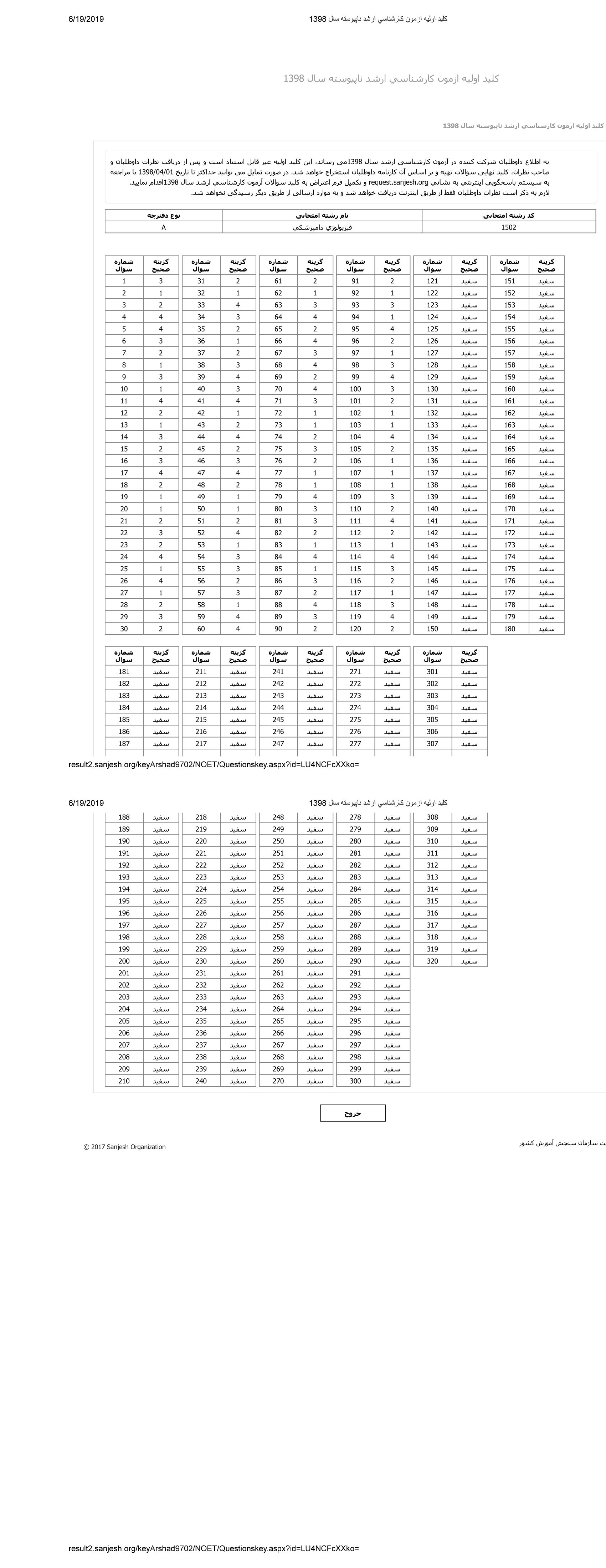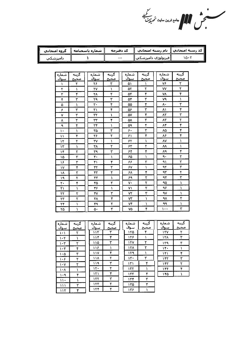 پاسخنامه ها