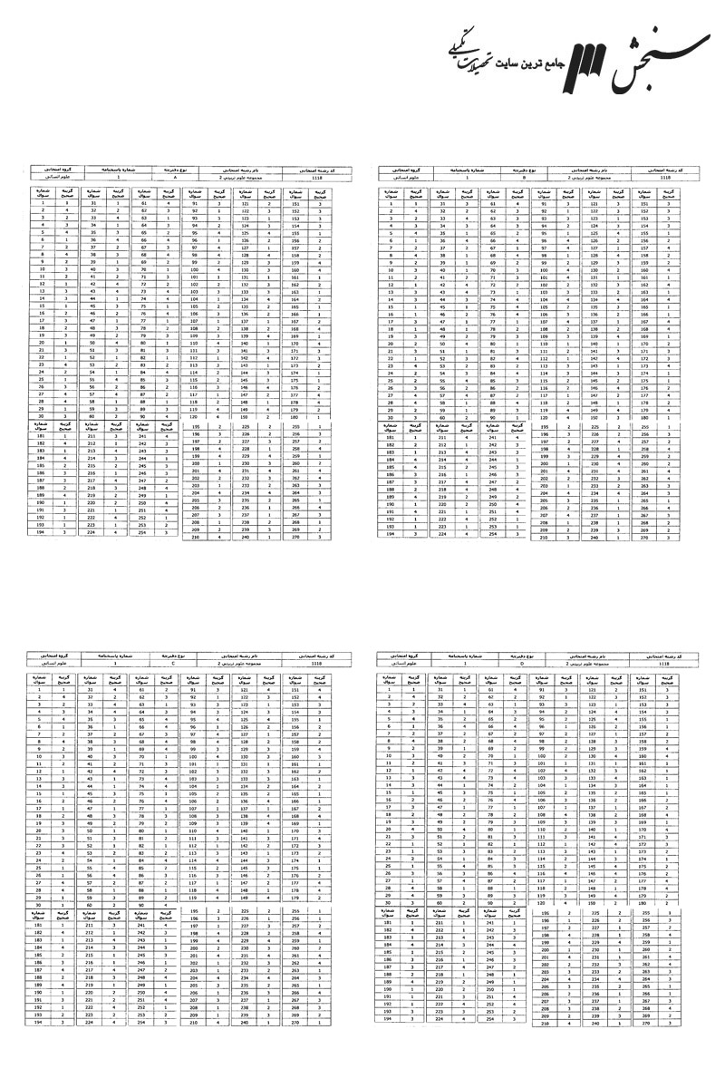 پاسخنامه ها
