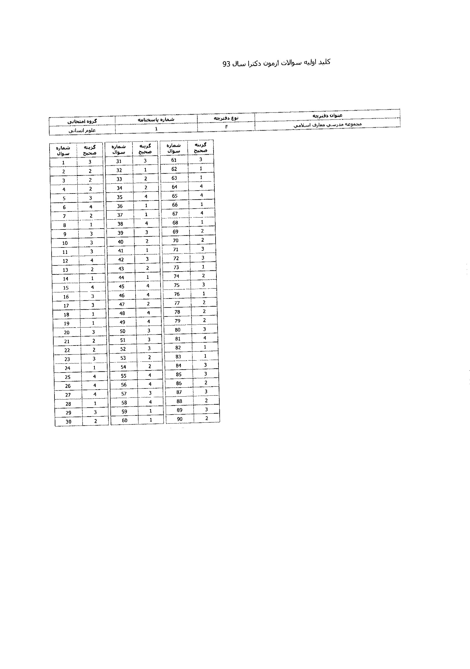 پاسخنامه تستی دکتری سراسری مدرسی معارف اسلامی سال 13951395رایگان31.9KB---