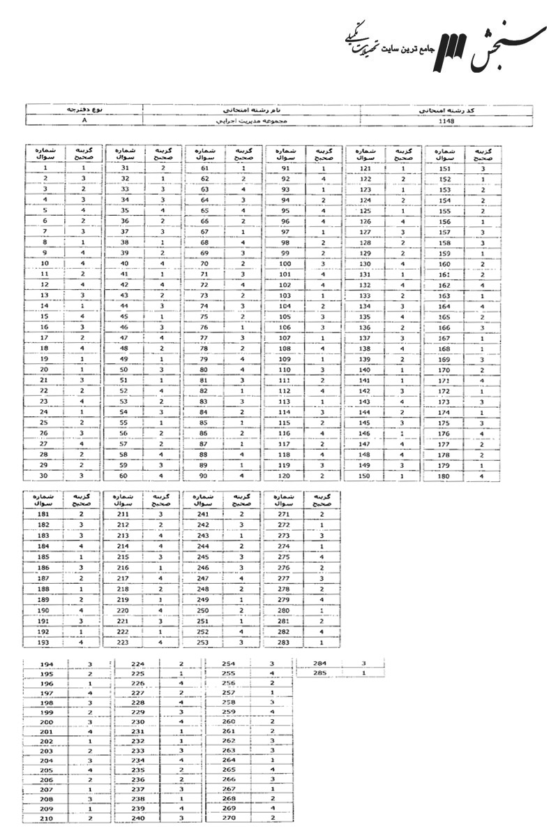 پاسخنامه تستی کارشناسی ارشد سراسری مدیریت کسب و کار و امور شهری (مدیریت اجرایی سابق)1391رایگان259KB