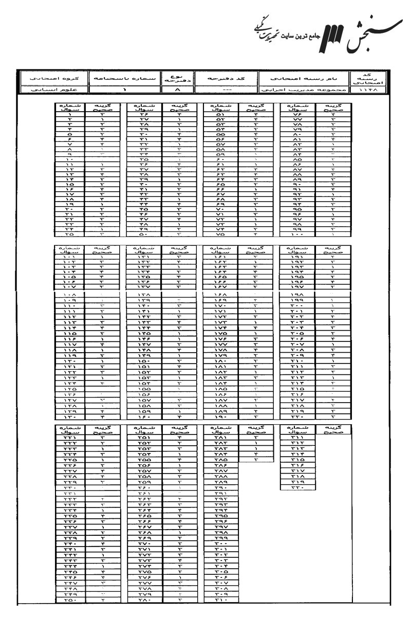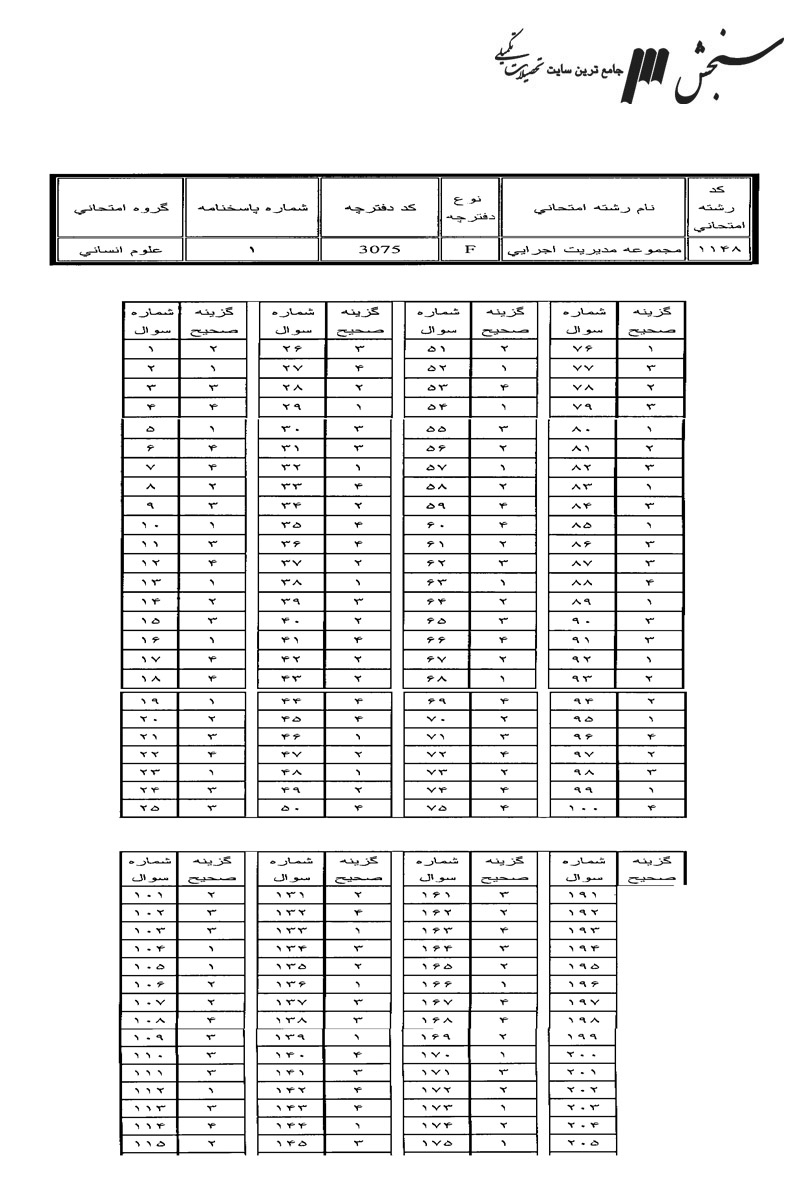 پاسخنامه تستی کارشناسی ارشد سراسری مدیریت کسب و کار و امور شهری (مدیریت اجرایی سابق)1397رایگان117KB