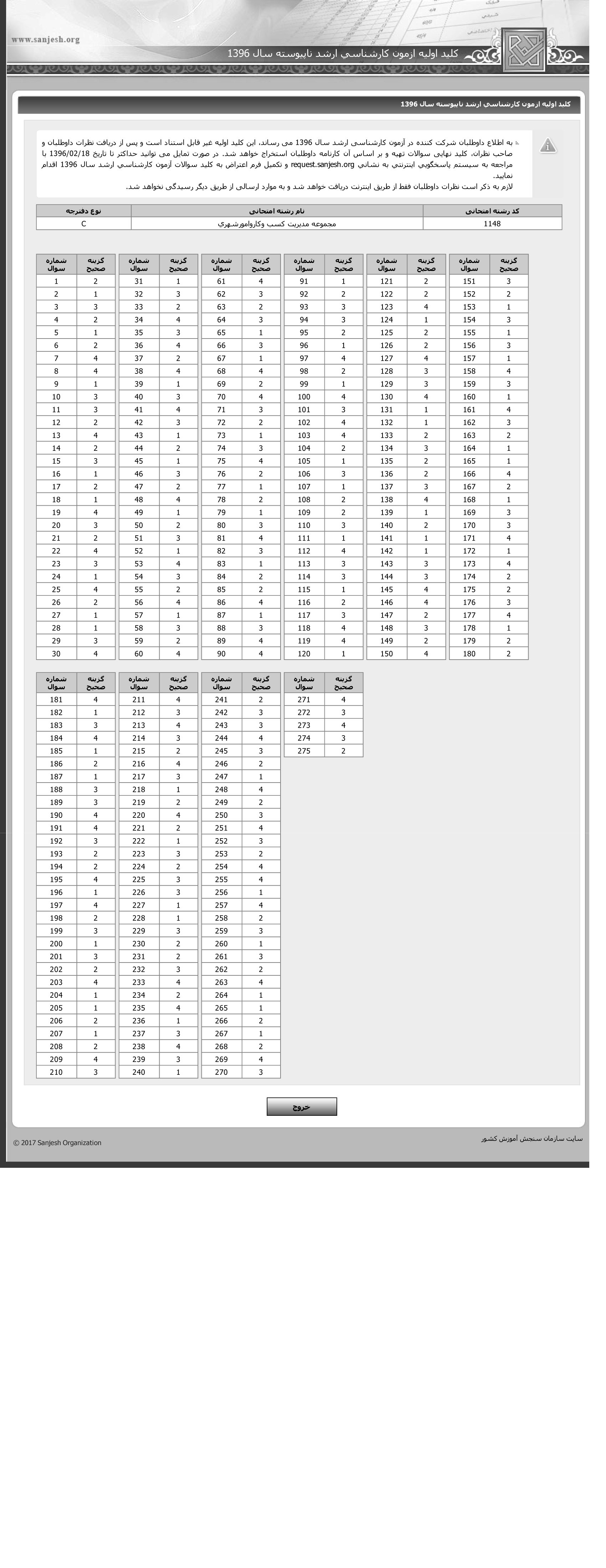 پاسخنامه تستی کارشناسی ارشد سراسری مدیریت کسب و کار و امور شهری (مدیریت اجرایی سابق)1396رایگان117KB