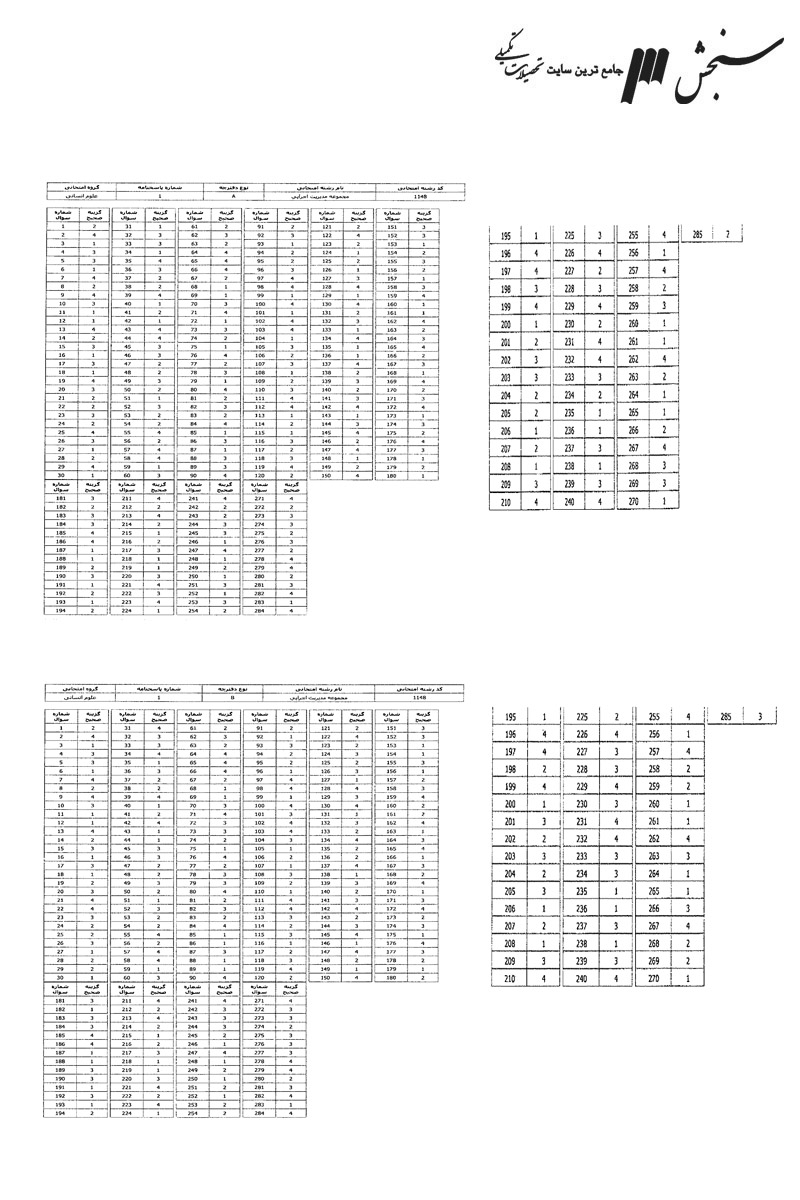 پاسخنامه ها