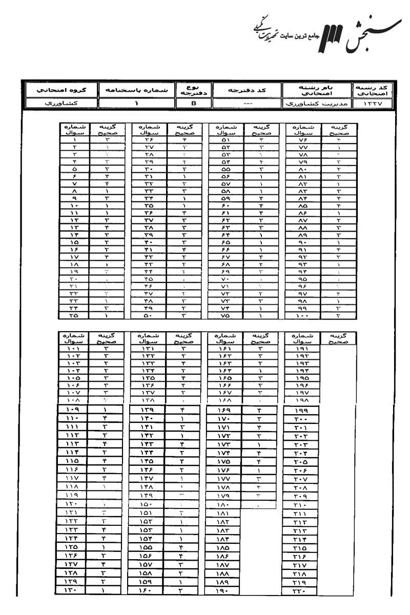 نمونه سوالات مدیریت کشاورزی، شامل دروس زبان عمومی و تخصصی (انگلیسی) – زراعت و باغبانی عمومی – آمار – اقتصاد کشاورزی – ترویج و توسعه کشاورزی – مدیریت مزرعه، جهت آشنایی داوطلبان با سوالات کارشناسی ارشد سراسری