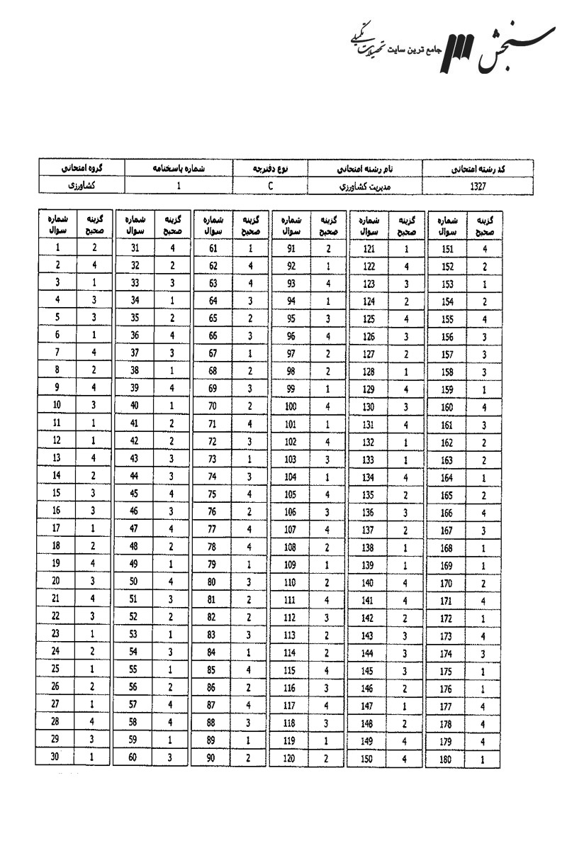 - سوال 1 مدیریت کشاورزی