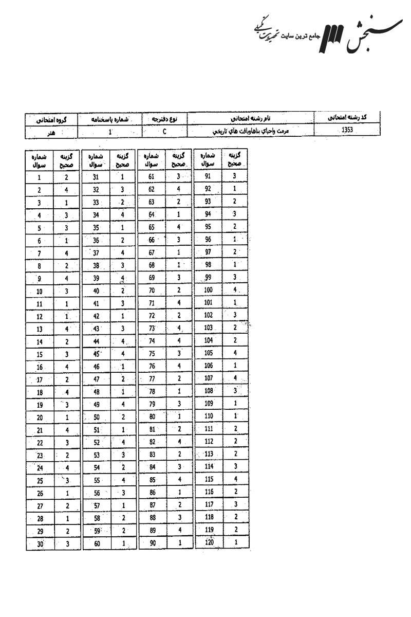 نمونه سوالات مرمت و احیای ابنیه و بافت های تاریخی، شامل دروس زبان عمومی و تخصصی (انگلیسی) – فرهنگ و هنر ایران و جهان – مبانی نظری مرمت – آسیب شناسی و فن شناسی بناهای سنتی، جهت آشنایی داوطلبان با سوالات کارشناسی ارشد سراسری