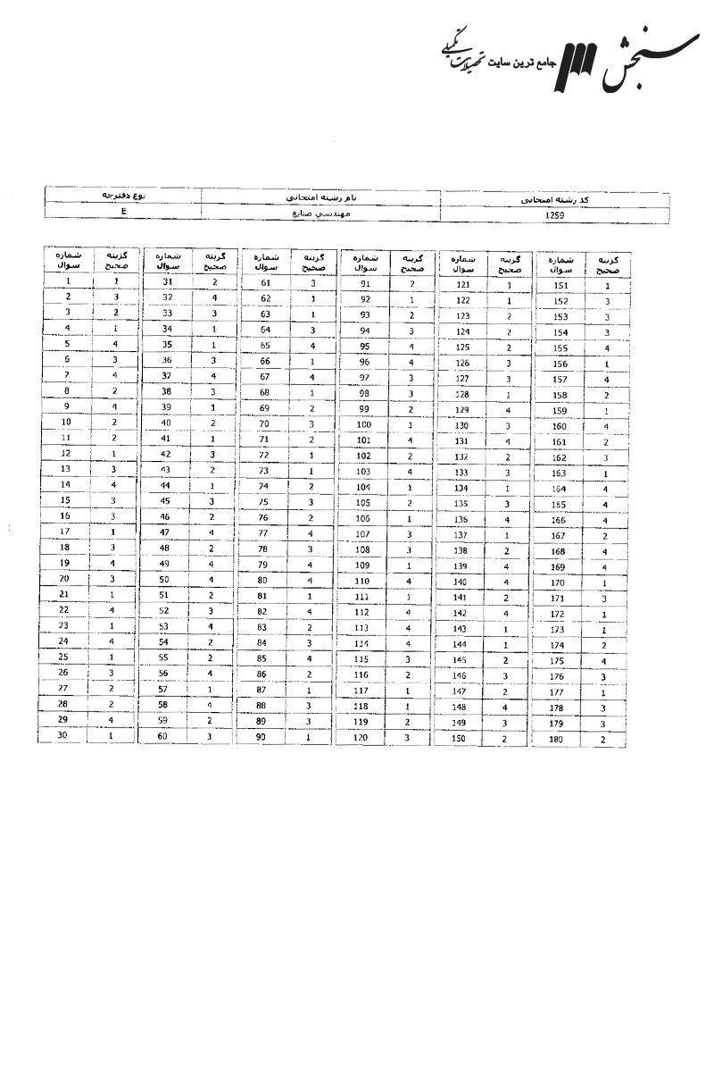 نمونه سوالات مهندسی صنایع، شامل دروس زبان عمومی و تخصصی (انگلیسی) – تحقیق در عملیات (1و2) – تئوری احتمال و آمار مهندسی – دروس تخصصی (طرح ریزی واحدهای صنعتی، کنترل کیفیت آماری، برنامه ریزی و کنترل پروژه، برنامه ریزی و کنترل تولید و موجودی ها، اقتصاد مهندسی) – ریاضی عمومی (1و2) – اقتصاد عمومی (1و2) – اصول مدیریت و تئوری سازمان، جهت آشنایی داوطلبان با سوالات کارشناسی ارشد سراسری