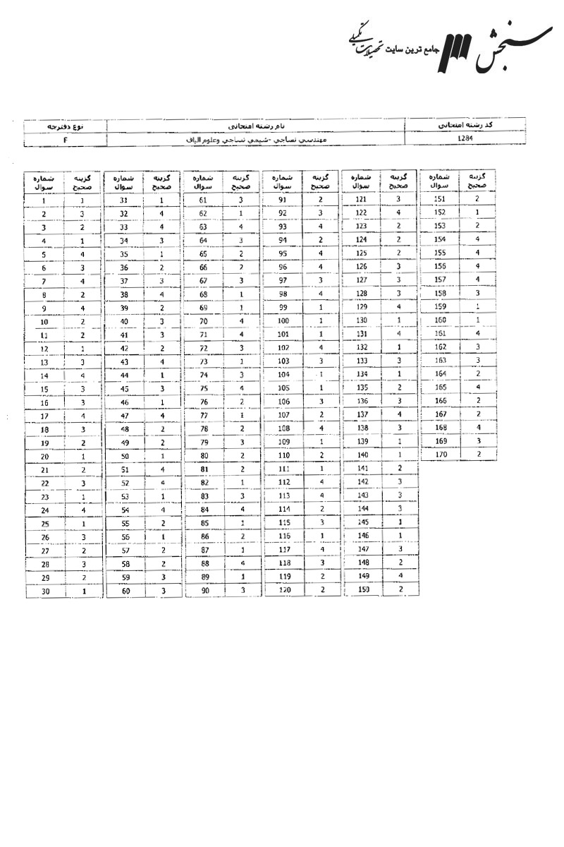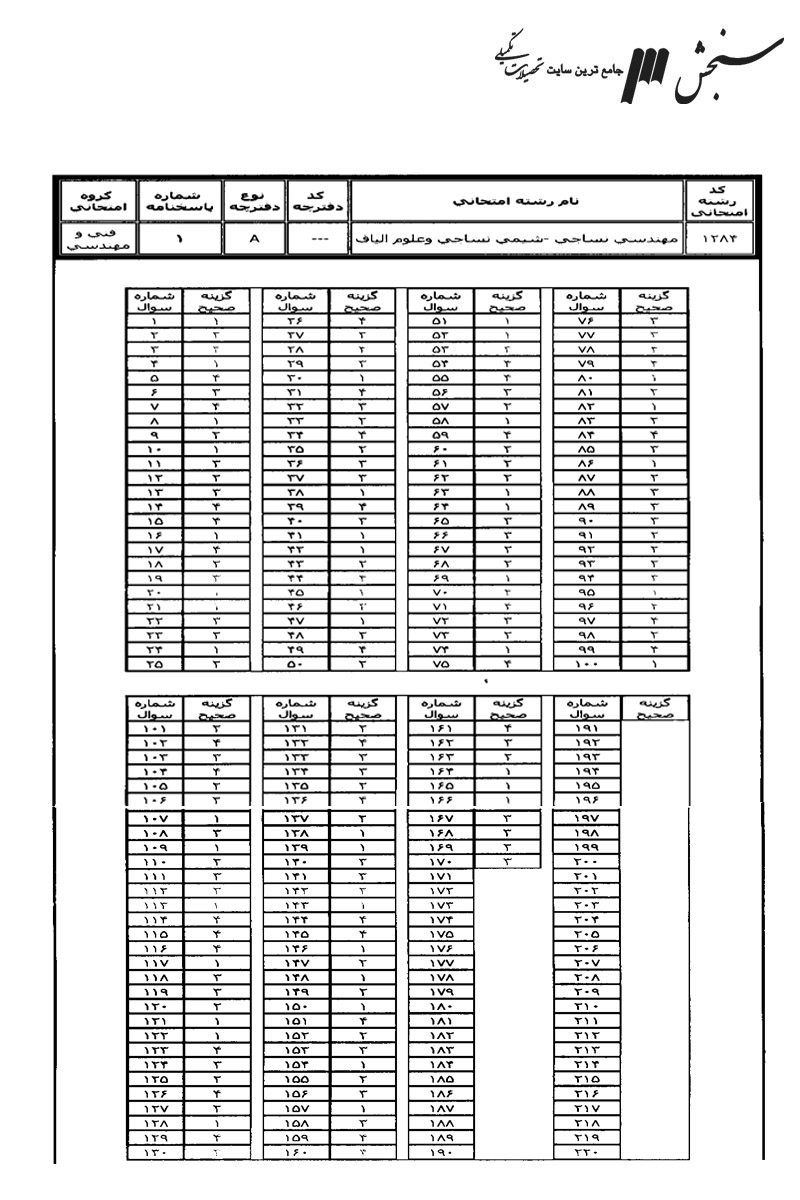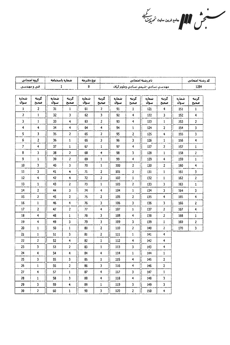 پاسخنامه تستی کارشناسی ارشد سراسری مهندسی نساجی - شیمی نساجی و علوم الیاف سال 13921392رایگان52.3KB