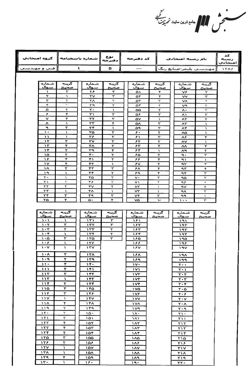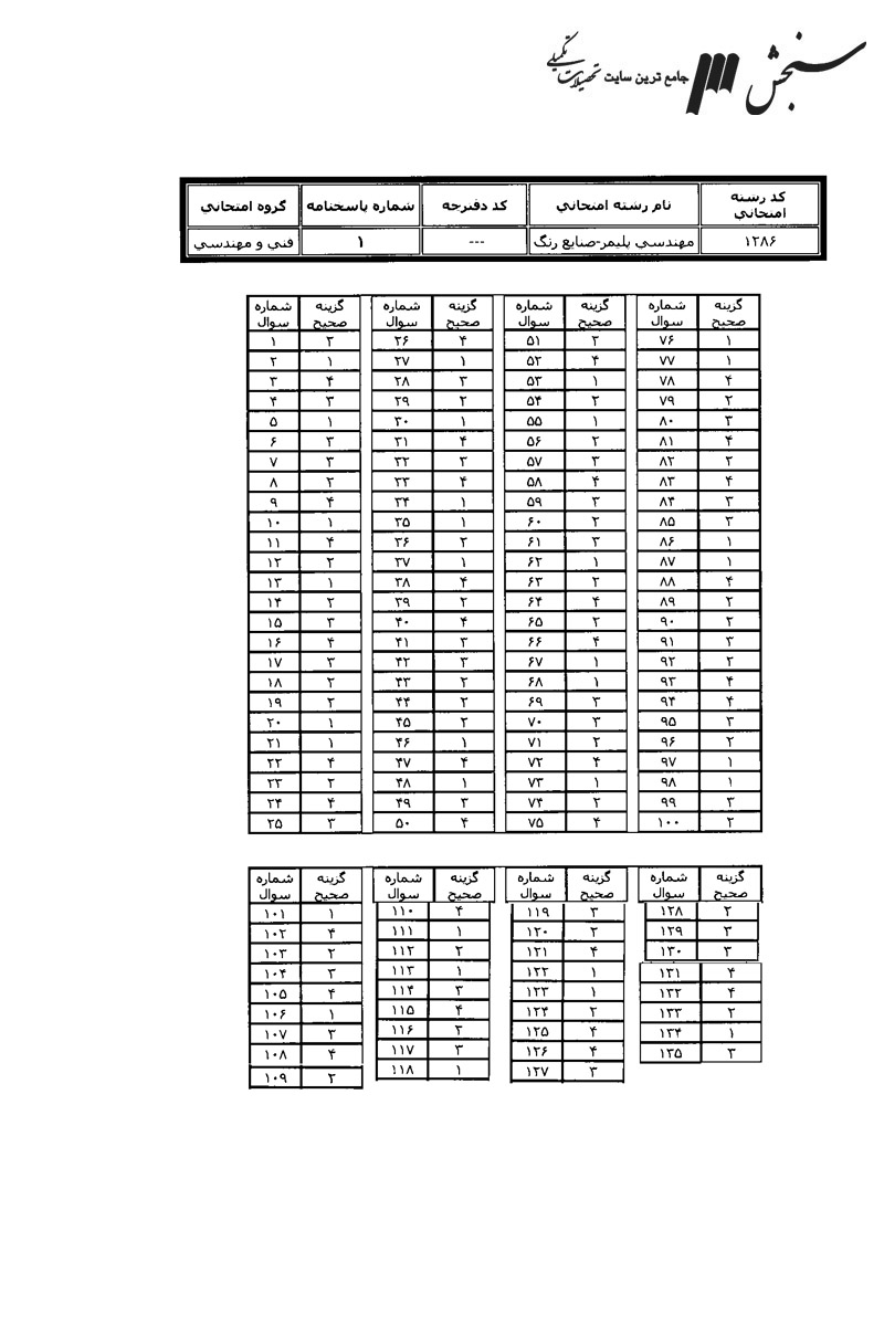 سوالات آزمون کارشناسی ارشد سراسری مهندسی پلیمر - صنایع رنگ1386---50,000 ريال1.51MB