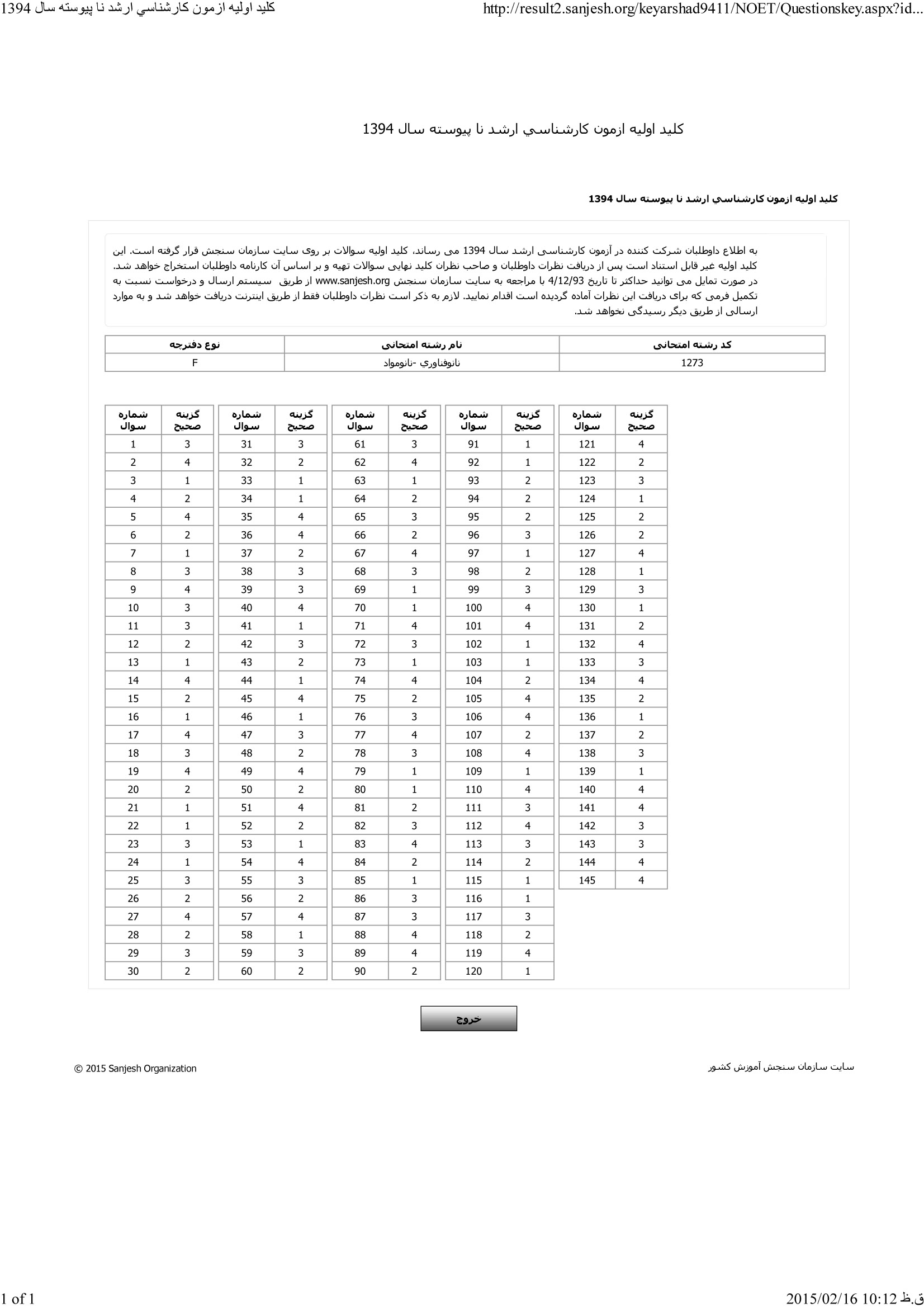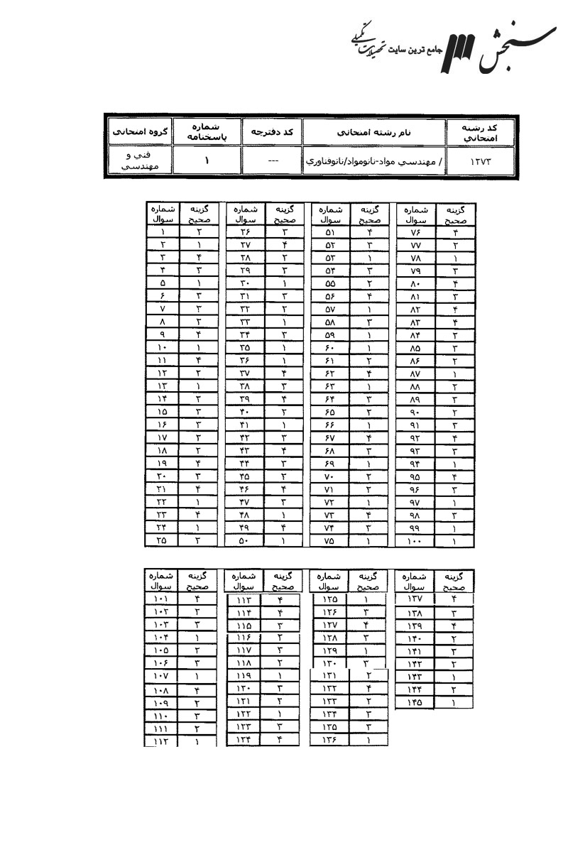 سوالات آزمون کارشناسی ارشد سراسری نانوفناوری - نانومواد1394---50,000 ريال2.74MB